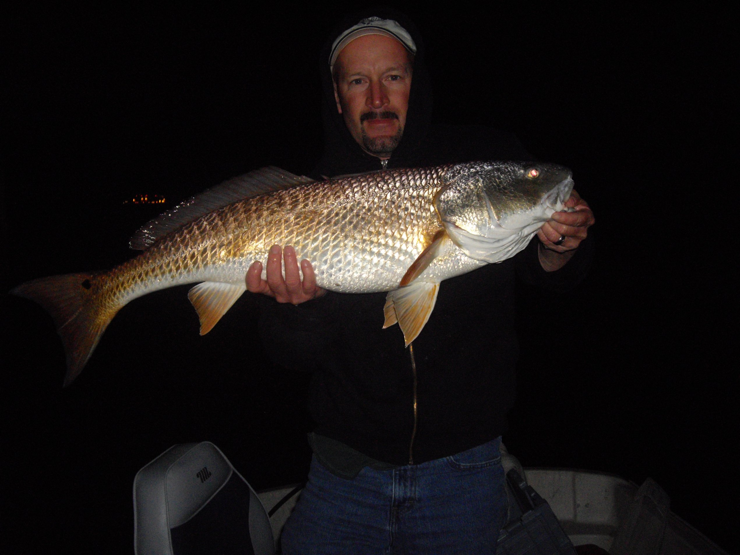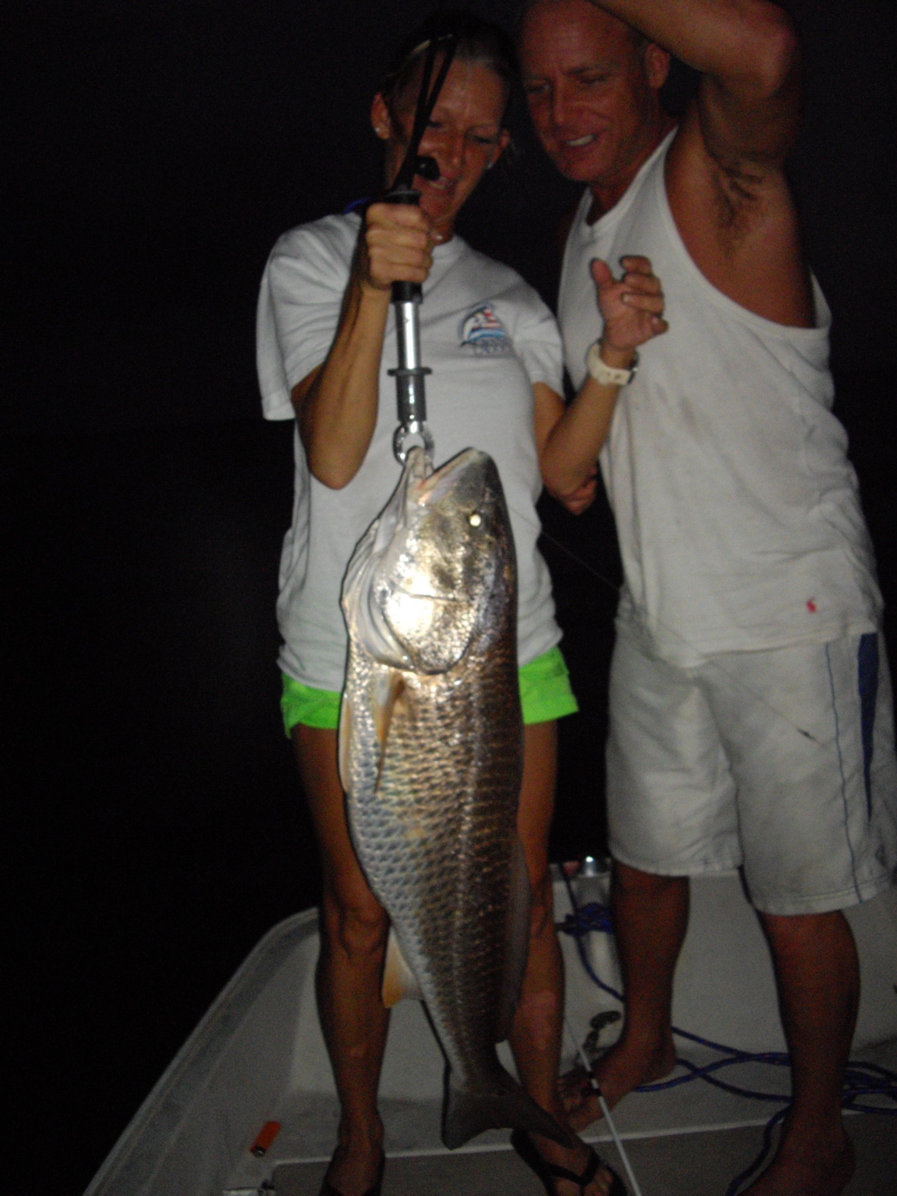 I'm hoping this pic shows up if not I'll have to figure out how to resize it and post it again. This is a 41" redfish that I caught while fishing very light tackle under a bridge for Magrove snapper (small but great tasting fish). My wife was skunking me Mangrove fishing. She had every fish on the stringer and I had one big sail catfish (we dont eat those, yuck). We were fishing live shrimp up close to the bridge structure on light tackle. Either using no weight or very light weight on our line. She had just one rod and I had three in the water, still getting skunked. That's when it happened. It couldn't happen with the two large bait runner rods/reels, but no it had to happen on my light weight flounder rod. The fish started pulling the boat around, my wife was holding on to the bridge to try and keep the boat in position while this fish tried to break my wrist. lol I finally landed it and it's my largest redfish to date. It measured 41" long but I did not get a weight. What a fun ride that one was. I put him back in the water after a couple pics so that he could pass his good fish mojo on to baby redfish.