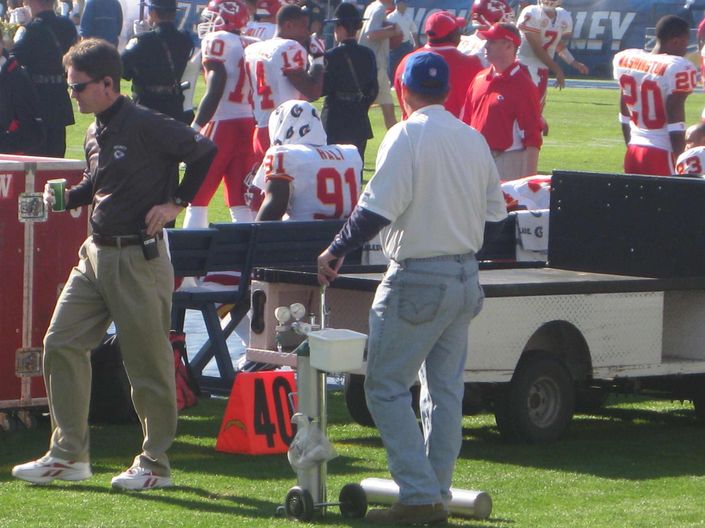 I had an opportunity this weekend to work at an NFL game. My job was to provide oxygen for the Kansas City Chiefs during their game against the Chargers. While I have been to several games and even been on the field a couple of times, this was the closest I have ever been to the action of an NFL game.