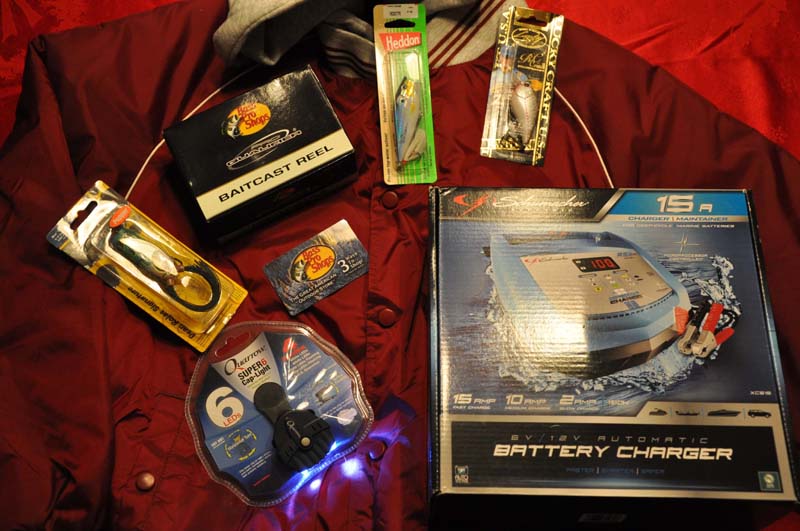 Well, I did pretty well. I got the BPS RedHead Angler Jacket, the Heddon Pop'N Image, Spro Bronzeye Popper frog, Lucky Craft RC 1.5 RT crankbait, BPS ProQualifier 6.4:1 ratio, $40.00 BPS gift card, a Quarrow Super 6 Cap Light, and a Schumacher Automatic Deep Cycle Marine battery charger/maintainer. I am planning on having BassFishin.com put across the back of the jacket in gray lettering to match the gray trim of the jacket. The Santa Monkey put a smile on my face for sure.