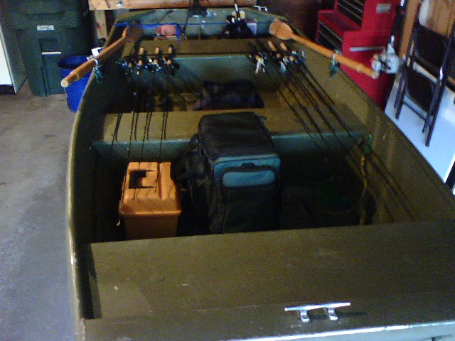 And boy I cannot wait. I have 8 combos rigged and ready. One with a jig, one with a swim jig, one with a spinnerbait, one with a soft 5" swim bait, one lipless crank and 3 crankbaits, shallow, med, and deep. I hoping to snag a couple pike as well as some nice bass. The map shows Flint Lake where I'll be fishing tomorrow. The bay to the lower right is a shallo0w pad filled bay that doesn't look like much but I just slayed the bass with the swim bait there last year. Gonna hit that hard. It's a great spot when it's windy which it is going to be tomorrow. The northeast portion of the lake often produces pretty well too. I've picked up several pike along the south western part of the lake in the past. The boats small but for our small lakes it works out pretty well, but as you can see, it gets crouded. I need a bigger boat, lol! It's a 12 footer extra wide jon with a MotorGuide 55# thrust motor on the back which is not in the pic. I'll let you know how I do tomorrow.