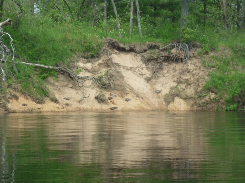 I did see a guy catch a 44" musky from shore on a rubber worm rigged below a bobber. Who wouldve thought? The turtles must be laying eggs. Any sand covered bank was littered with them. Im guessing they bury the eggs in the sand a bit. I seen some that were bigger than the circle I make touching my hands together. |