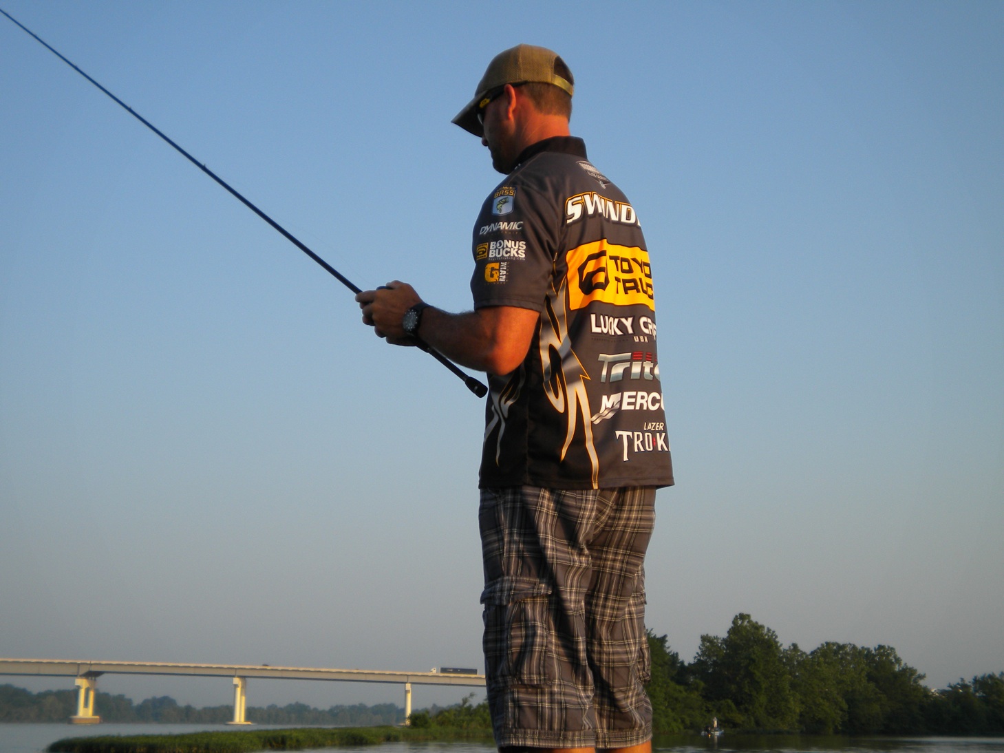 I just got home from the Diamond drive in AR. It was the best $100 dollars I've ever spent on fishing. The first day I went out with James Strickland. He knew the area well and fished hard all day. I learned a few flipping techniques from him. Day 2 I drew Gerald Swindle. This guy is a class act and wants the marshal to enjoy the day. He had me laughing all day and taught me more about fishing in 8 hours than I ever dreamed possible. Day 3 I drew Matt Reed. Awesome guy with a ton of experience. After a slow start and lock issues he got into a flurry of action. He boated a limit of 15 inch fish with some solid 3lbers in under 15 min. I learned a great deal about graphs and various other techniques with him. If anyone has the chance to marshal a bass event I highly recommend it. Here are some pics from my trip. The guy in Reese's boat is my dad loading it. Dkeys