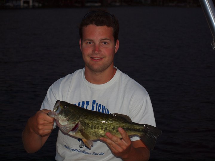 I went out a couple times this weekend for about five hours total caught 3 LMBs, 4 Chain Pickerels and a couple SMBs. Decided only to bring my casting gear with me so that I would get more comfortable with it. I know all the spots around my end of the lake where I can take my spinning gear and drop shot all day and catch plenty of smallies. So I felt like I needed to change gears and locate some shallow, grassy areas to find large mouths. I looked on my topo map and found a bay that I previously knew had some good grass cover but I have never fished. Saturday night I caught my biggest of the year, 19'', I don't have a scale but I would assume at least 4 #.