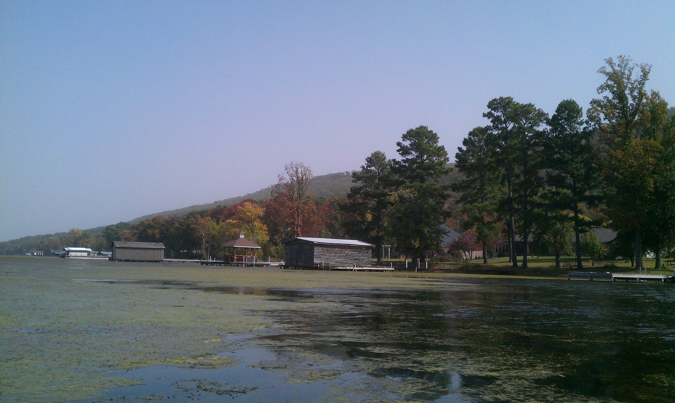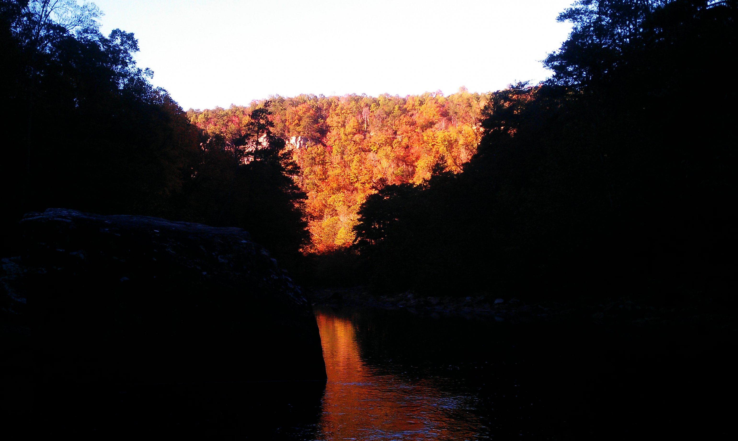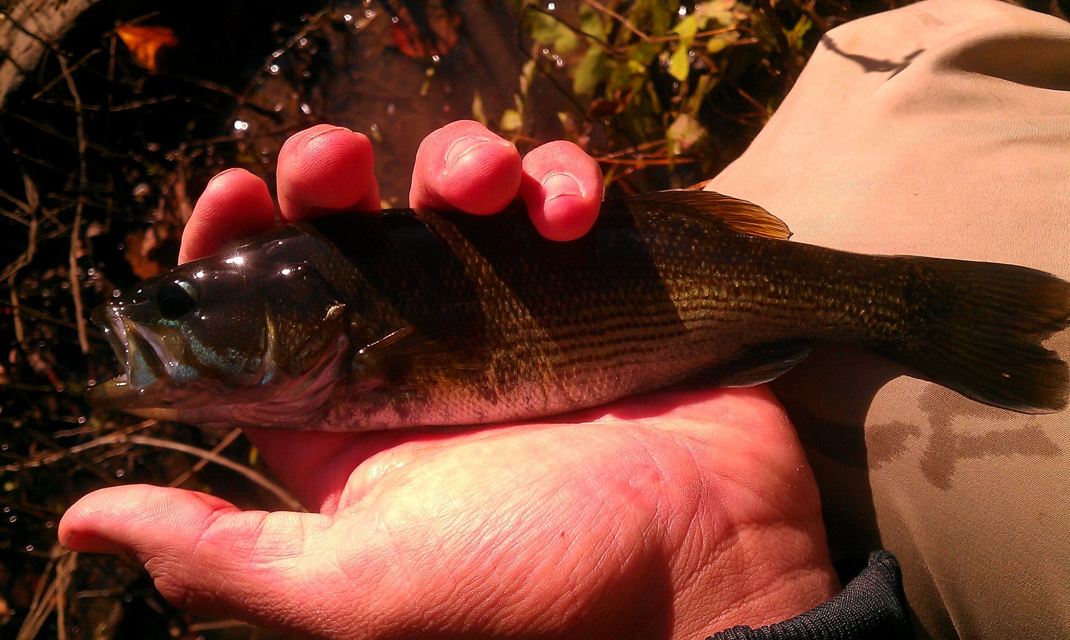 The pictures mostly speak for themselves, including the relatively few bass. A cold front had passed through 2 days prior, and the skies were still deep blue and the wind was a huge problem. The first location was lake Guntersville, out of the Langston boat ramp. The wind started up as I was putting in, rolling straight up the lake and turning it into a fury of rolling, white capping waves. I, with only my 10’ kayak, fished anyway. The trick was simple, I slogged over the mats of milfoil which kept the waves in check. As long as I stayed on the mat, there was nothing to worry about. I only manage 1 small dink, on a senko. Also ran into a school of bream that I fiddled around with a while. Threw spinnnerbaits, flukes, senkos and a frog. The frog still got lots of hits, but they must have been dinks…nothing big enough to get a hookset on. The 2nd place I fished was that evening, town creek in the actual creek. Same story, pretty, some very large and impressive stretches of rapids. Only a few bream on a hopper pattern with the fly rod. Did find 1 half of a torn up kayak paddle, which I will turn in to a single handed paddle. That night, I crashed in the truck. Got some nice sleep, the temp was nice and cool. The next morning I fished in the Little River Canyon, which is the deepest canyon in the US east of the Mississippi river. The fishing again was lousy, although right before leaving I found the fish would hit a white with crystal flash wooly bugger fly. But on the whole, I caught 2 redeye bass, and several good bream and that’s it. One of the redeyes is in the back, I am gonna let him live in the aquarium. Then, after hiking out, I drove to sheik seaver’s compound, which is strategically placed on the high ground. Got there a little late, but we saw the Bama-UT game, and I was fed a hell of a roast. The next morning, we attempted to fish that which is known as the dead sea, a large body of water, reputed to be sterile. There was no current, and the water was glassy, like a desert. After a whole half day, we had manage a few bass. I tried watermelonseed senkos, crankbaits, jerkbaits and found that the cranks were the most effective. Finally, late in the day and due to my great skill, I caught a bass which was at least not small. All in all, it was a great weekend. Thankyou John and Lisa for your great hospitality. Roll Tide, defeat the infidel barners… (I was listening to a lecture on sharia law while writing this post)