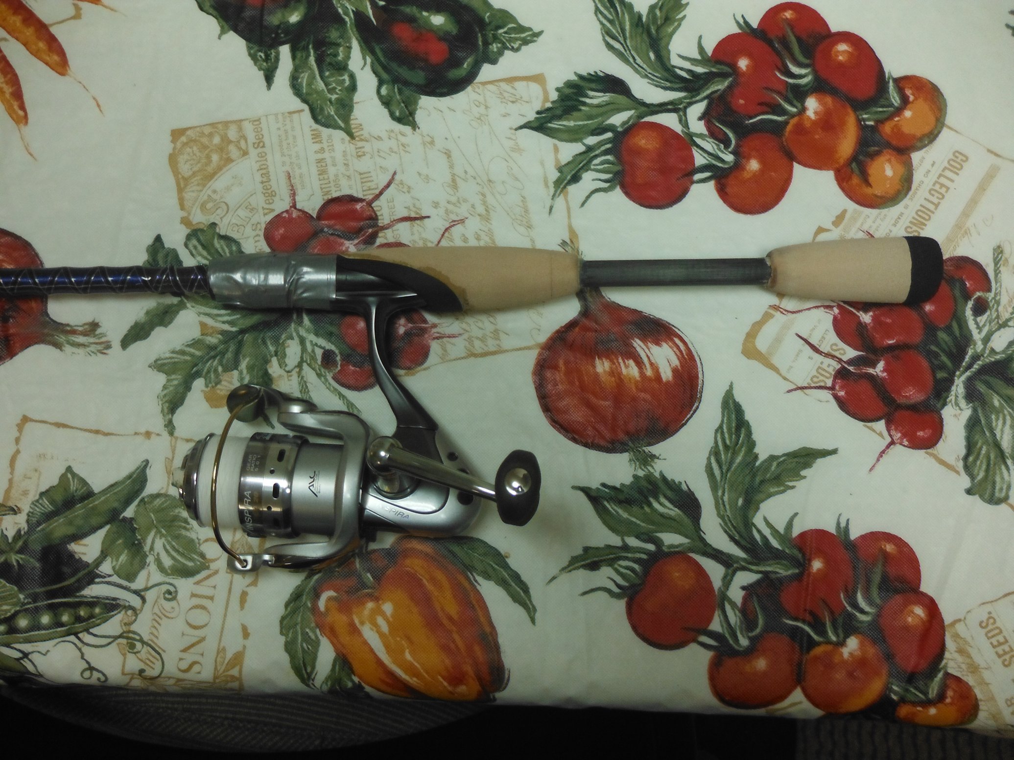 Was down in the ol basement today and walked by my fishing stuff. Saw the pile of rods leaning against the wall, and saw my old shakespeare. "Thing's butt ugly." I thought to myself. "The handle just looks bad and is to thick. Might look nice a spit grip!"
