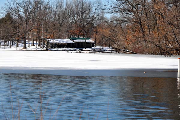 brings back memories of the last time table rock froze all the way past kimberling city. we are really lucky here and can fish all winter. have to hand pick the days because of temperature, but it is not like no fishing because of ice.