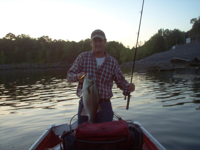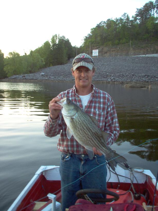 Myself with a smaller hybrid. This was right before they turned the dam on and almost killed us. Actually, we probably would have capsized had the motor not started.