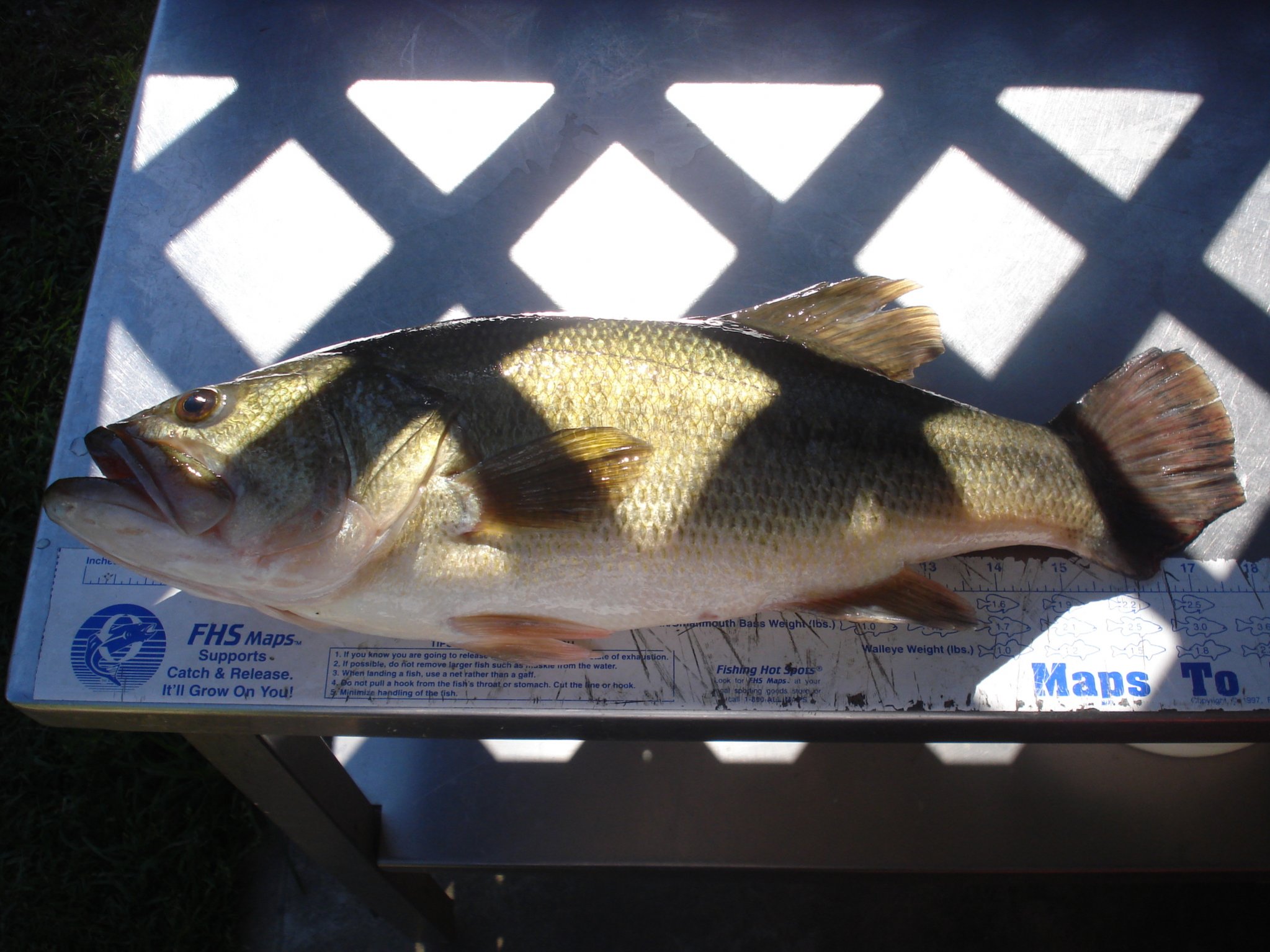 Cought mine Thursday night 8.64 pounds. The length was at the end of a 22" golden rule so probably 22.5 inches long. I would have had it mounted but about 20 years ago I caught a 9 pounder so I am waiting on a 10#. I think the new way is to measure, weigh and release and get a replica made.