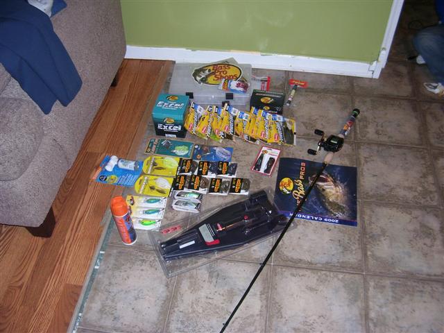 i won,i won.i made it out of bass pro and i still have 255.00 left for the spring classic in a couple weeks.i took a couple pics,but forgot to put the 3 life jackets i bought in pic and a couple t shirts.