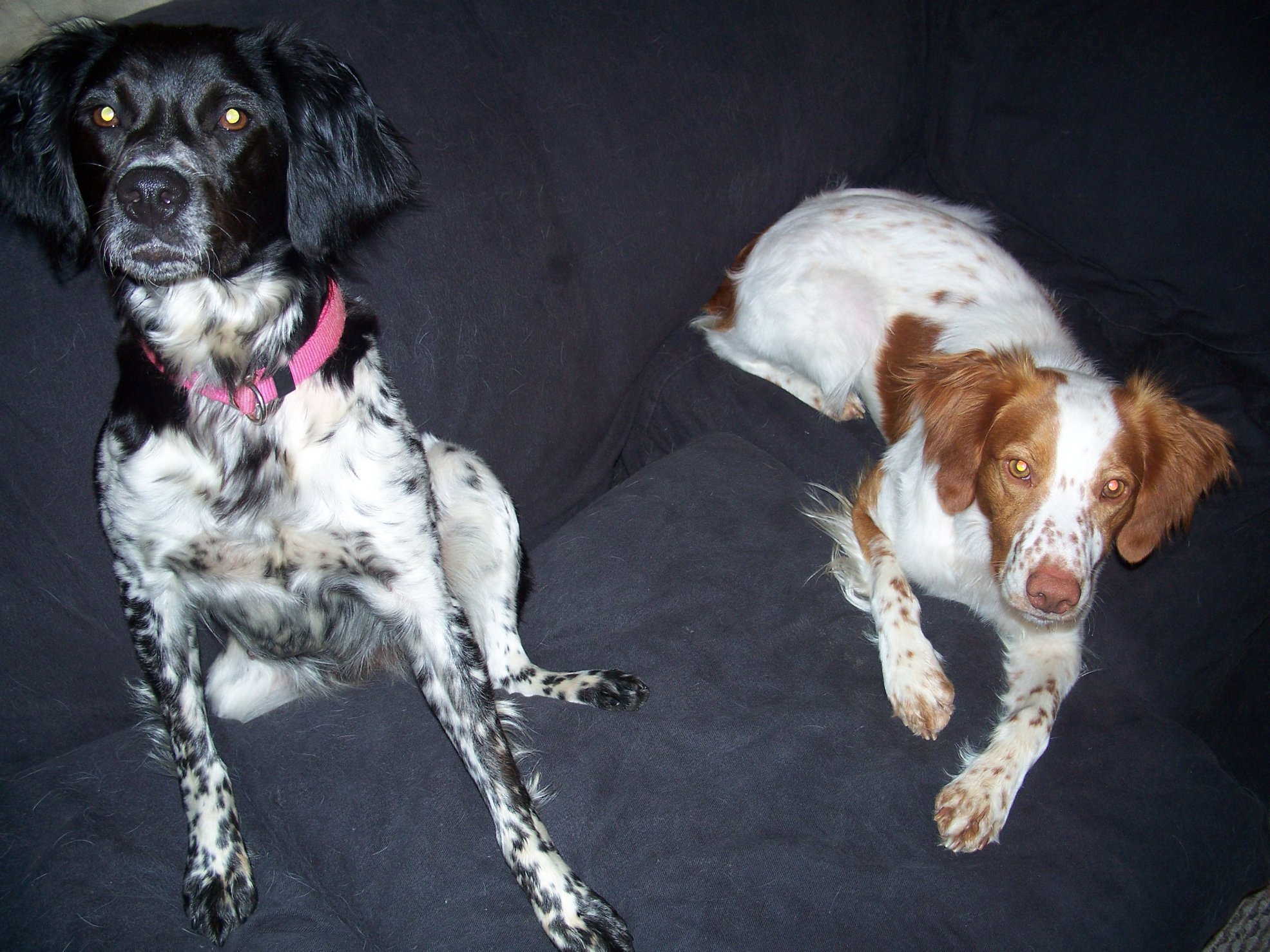 these are my two brittanys they are supposed to be outside hunting dogs but they get to come inside every now and then.