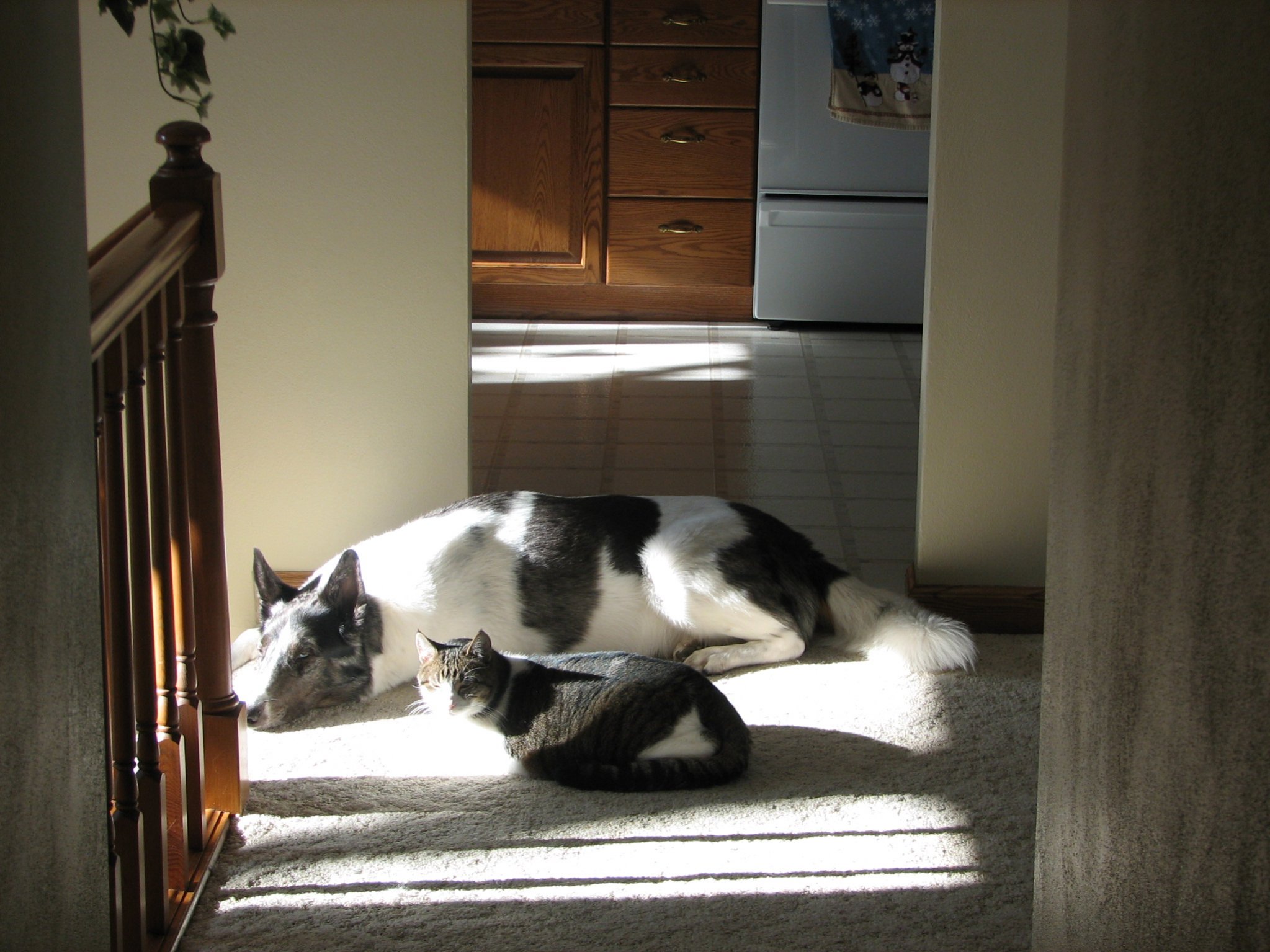 Here he is hanging out with one of our 3 cats: