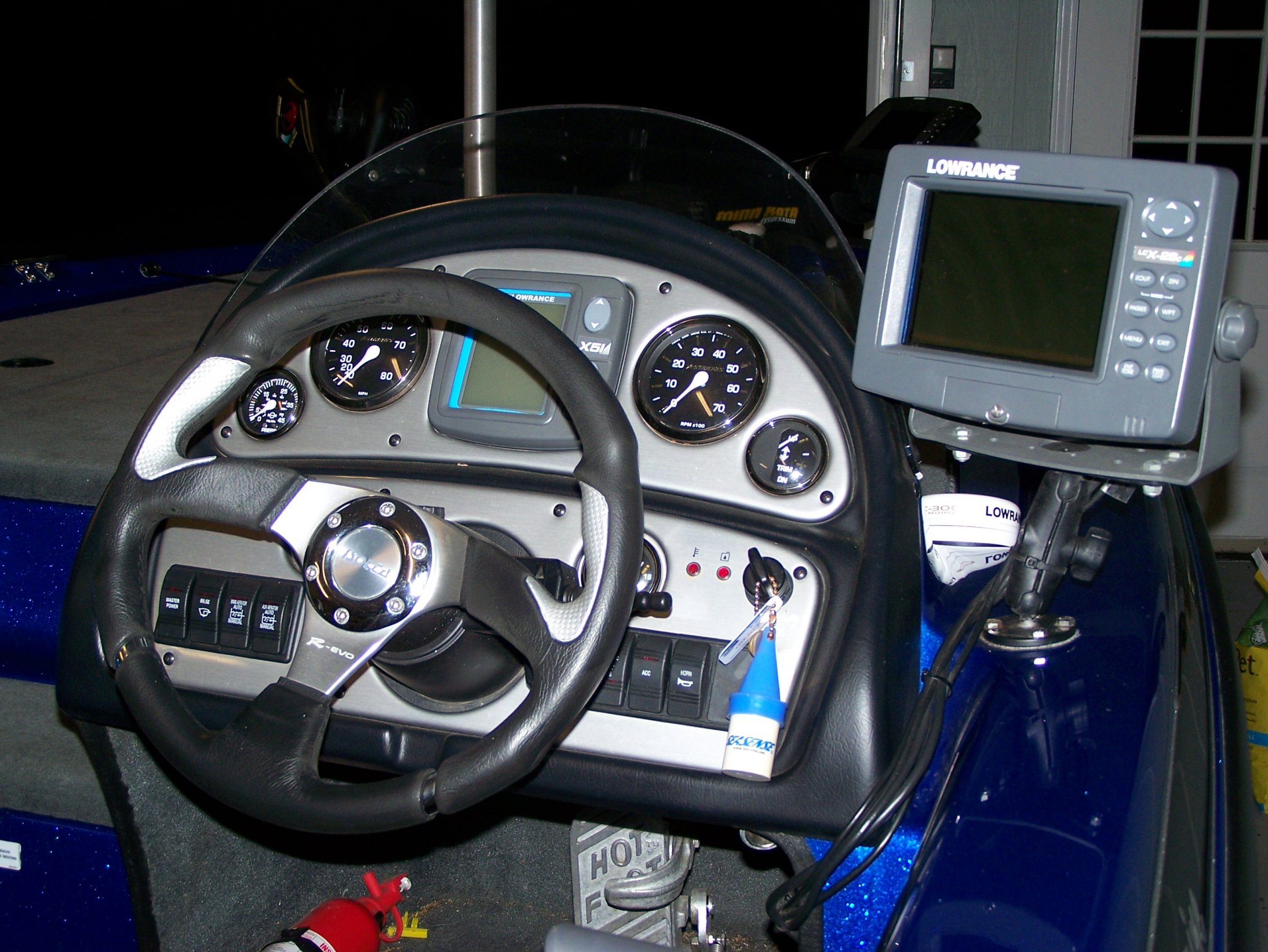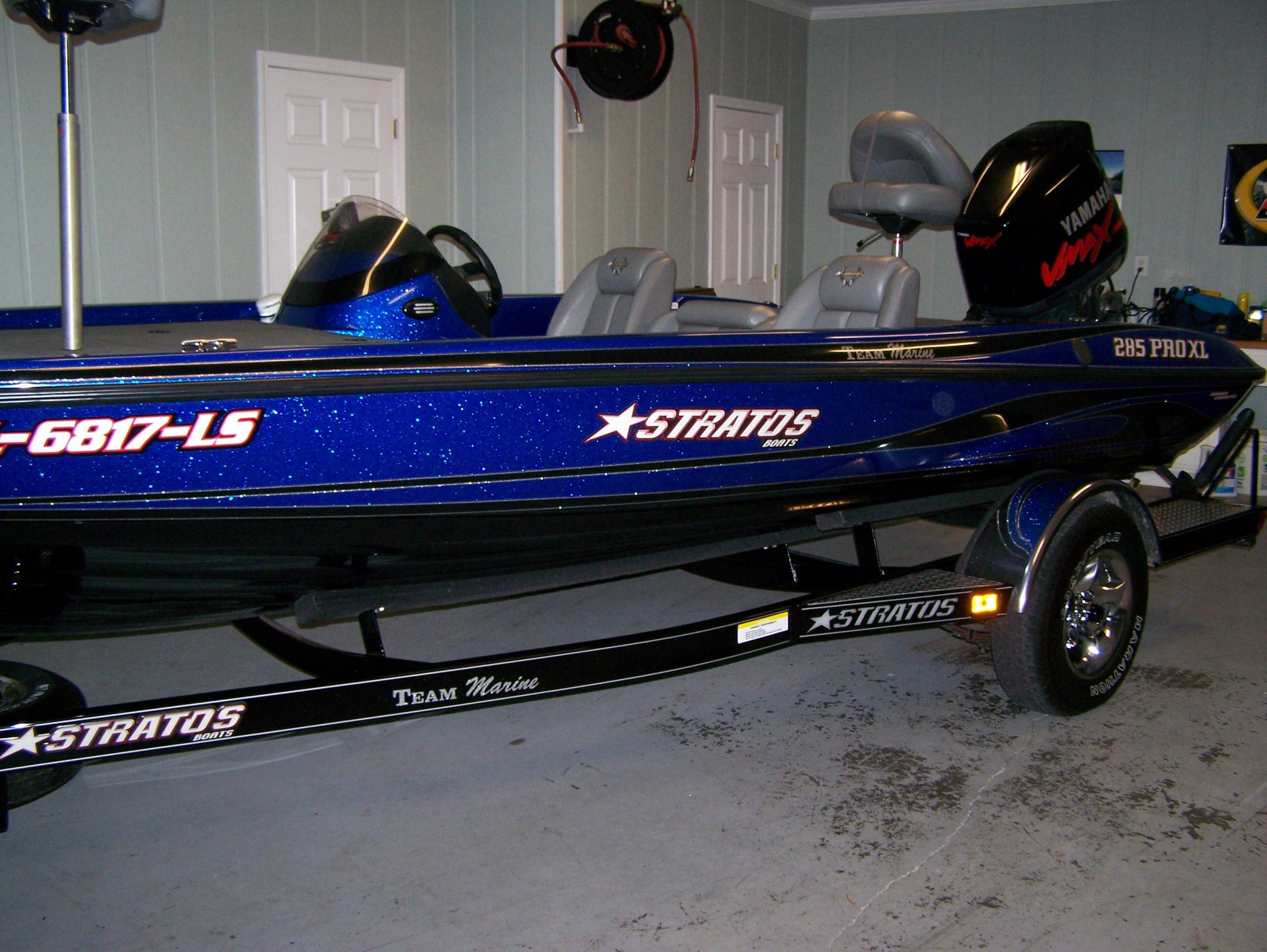 This is the new boat. It is a 2005 Stratos 285 with a 150 Vmax. It has a custom color scheme and custom chrome wheels. It has good compression and water pressure. everything works except trim gauge, but it is no big deal to fix. What do you guys think of it?