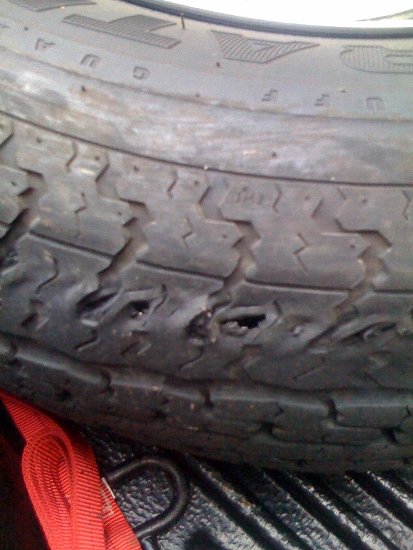 I guess I found out the hard way that they are not rated to go so fast. Actually I got lucky and found this when I stopped since I check my tires and bearings every time I get out of the truck. The tread actually separated from the tire. I think that the wheel was not on straight after I put it on last time and it may have been sitting on that stupid plastic ring that covers the bearings. The ring is now gone and a new tire is on.