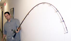 What I've found is if someone has a spiral wrap made the next rod he has made will be a spiral wrap. This is a spiral wrap getting bent and shows pretty good what happens. This one was made by Kims Custom Rods in Lakewood Ca. They have been at it for a long time.
