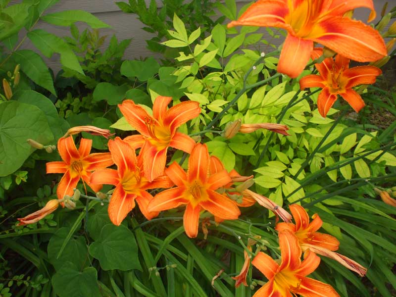Wow, 66. You've got some awesome flowers. I love those blue things in front of the house. I've got a small bush in my back yard, but I just call it "pom-poms." Don't know the real name. Your day-lilies look great too!
