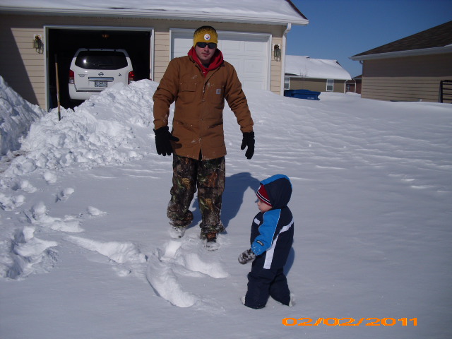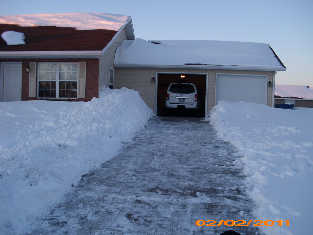 Here are a few pics that we took today. Most of the pics that show how much snow we got are on my phone, I might add them later though. As you can tell, I managed to get Britneys side of the driveway cleaned off before it got dark. It took me about 4 hrs just to accomplish that much. The high today was around 12 degrees and the low is supposed to be -15 degrees. We are supposed to get some weather in the low 30's to the low 40's in the next few days so I will get my side of the driveway cleaned off then.