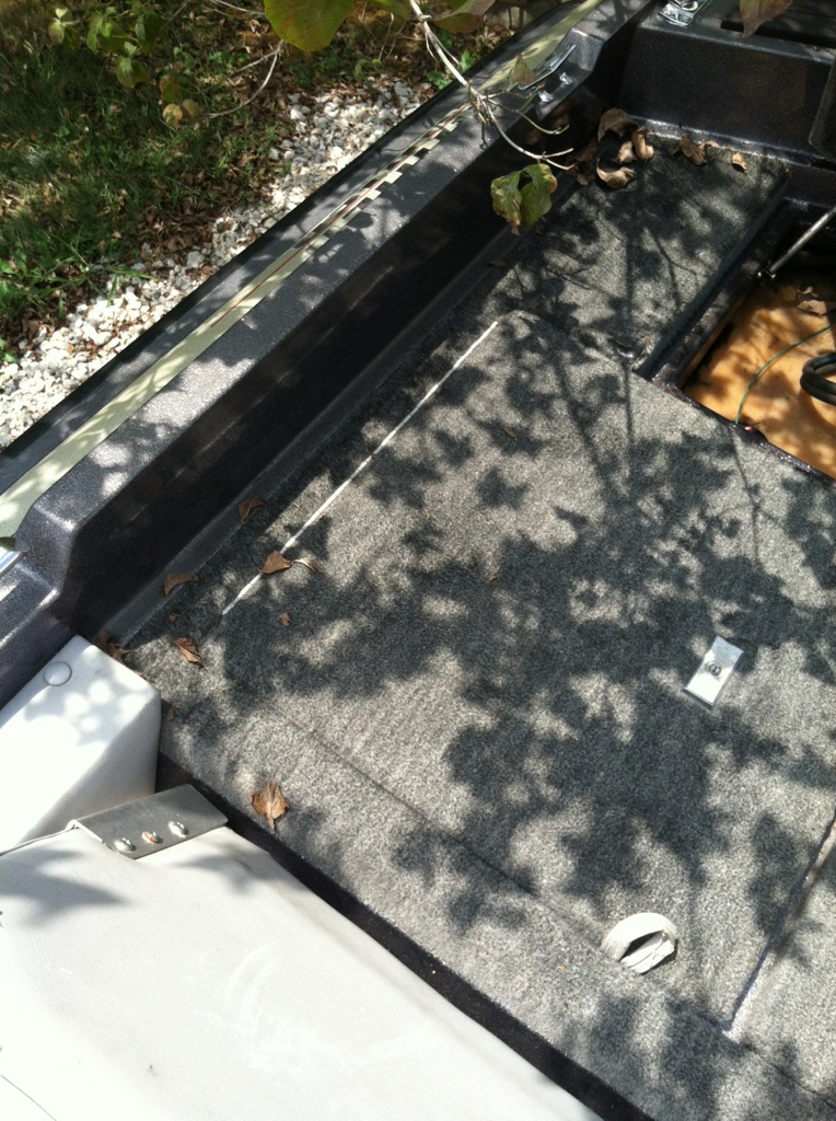 Whats up fellas? Im new to the sight and just reading through posts for fun. I recarpeted a skeeter bass boat with the indoor/outdoor carpet from Lowe's a few years ago. Future reference to anyone.... I used the 3M brand spray adhesive (#90 high strength). It had a super strong bond, even on the edges. Application was simple and mess free. After you cut the carpet out for and individual cabinet etc..., you spray the backside of the carpet, and spray the cabinet too. You wait about on minute and apply. On my cabinets, I made my carpet seams fold on around and end on the inside of the cabinet, right where it made the 90 degree bend. I pressed the end of the carpet into the 90 degree corners with a putty knife. Hope this helps any if my directions make sense.