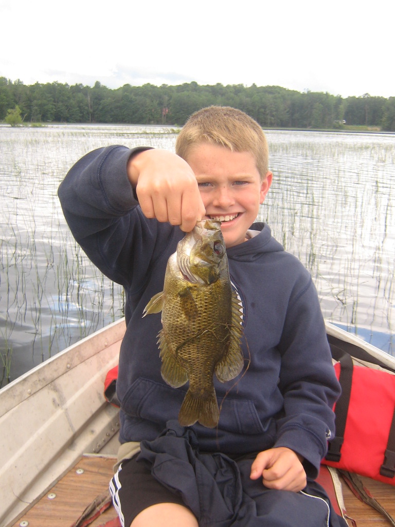 Junior caught his first ever topwater fish on a hula popper. I've attached a picture of what we call a rock bass, ain't that some pretty water in the background? What is it really or what do you call it? You can't tell from the pict. but the eyes had a bit of a reddish cast to them. Anyway Junior was as happy as can be and we had a great day in a 14 foot '78 Montgomery Ward tin boat!