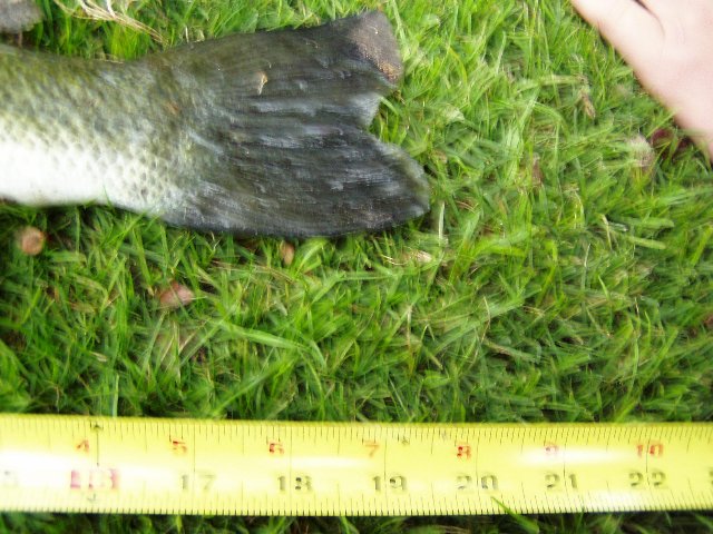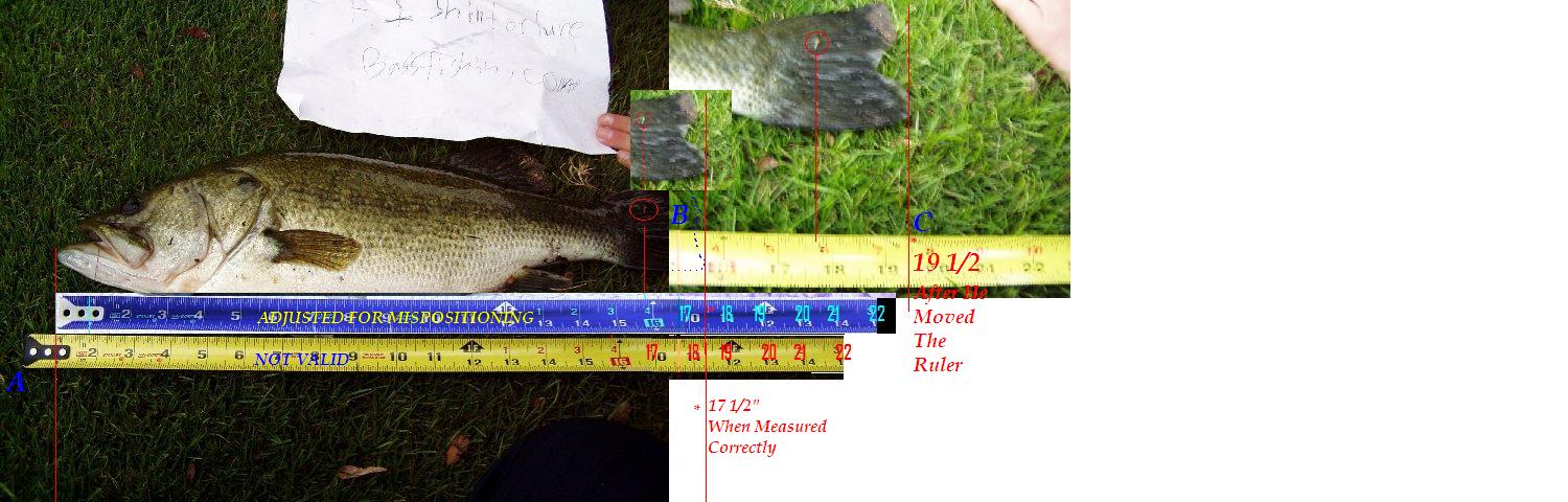 i had no intention on cheating and i am very angry. its hard enough to get the fish to hold still,name tag not blow away , get good pic ,and have tape visable. i was trying to hurry and get the fish back in the water.i got ready to take pic and noticed you couldn t see the letters on the tape.i moved camera in and got the numbers visabul ,but did not notice the tail was cut off .i then got pic of tail to make it numbers clearly visabual. the fish might be 19 1/2 and thats fine fine. the girth ,all i had was a tape measesure and i got the best pic i could. i am highly affended that you right away think i am trying to cheat.