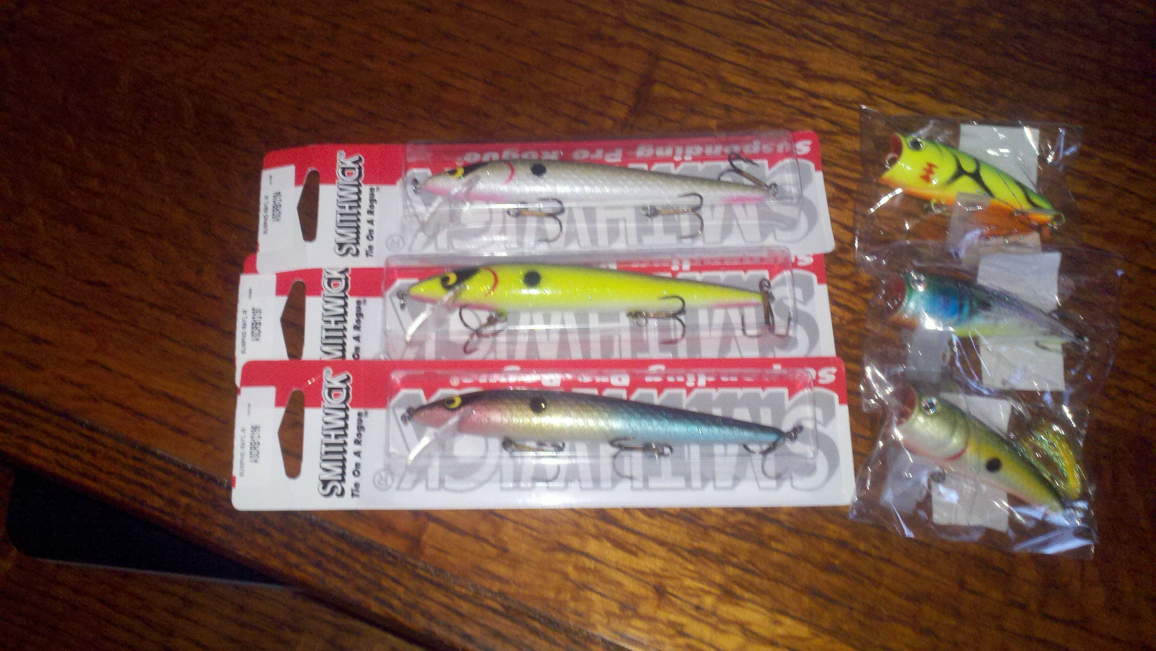 Not sure who had my name but they did a great job. 3 of the "redfins" that we had been talking about for Table Rock plus three topwaters that have great color patterns. The pictures don't do them justice.