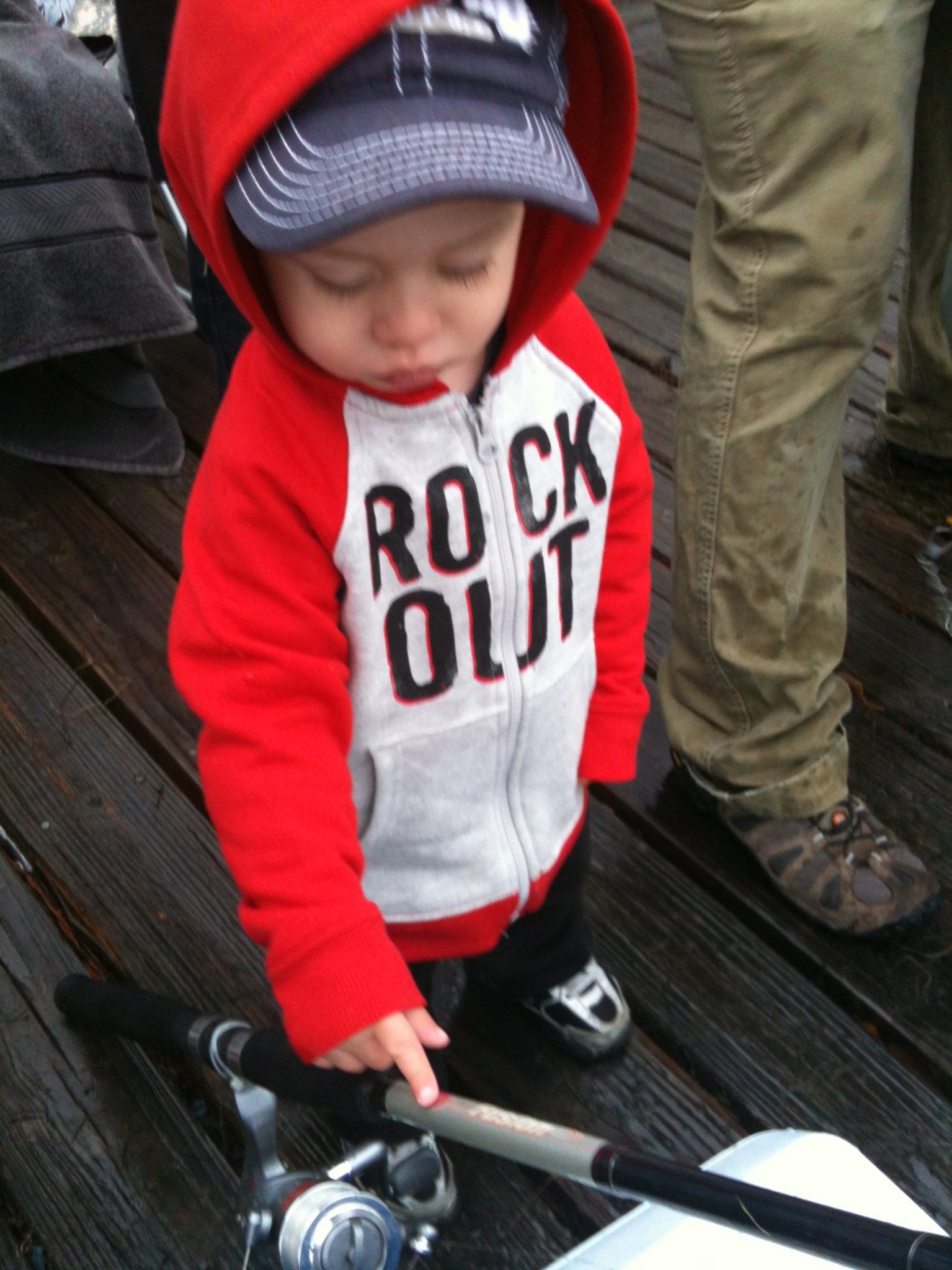 My 17 month old fishin buddy!! His first catfish derby at Catfish Cove. It's a kids only fishing pond on Fort Polk.