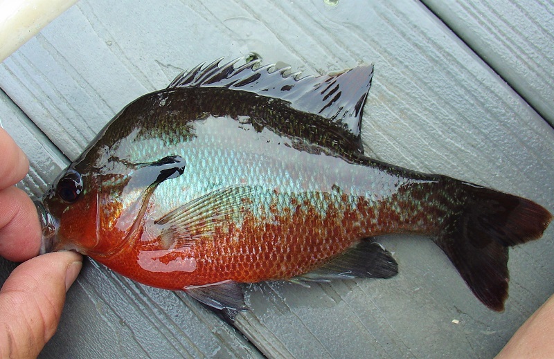 Got out and did some fly fishing. Caught over a dozen Bluegill, about a dozen bass (none over 1.5 pounds), several Crappie and Redbreast Sunfish. |