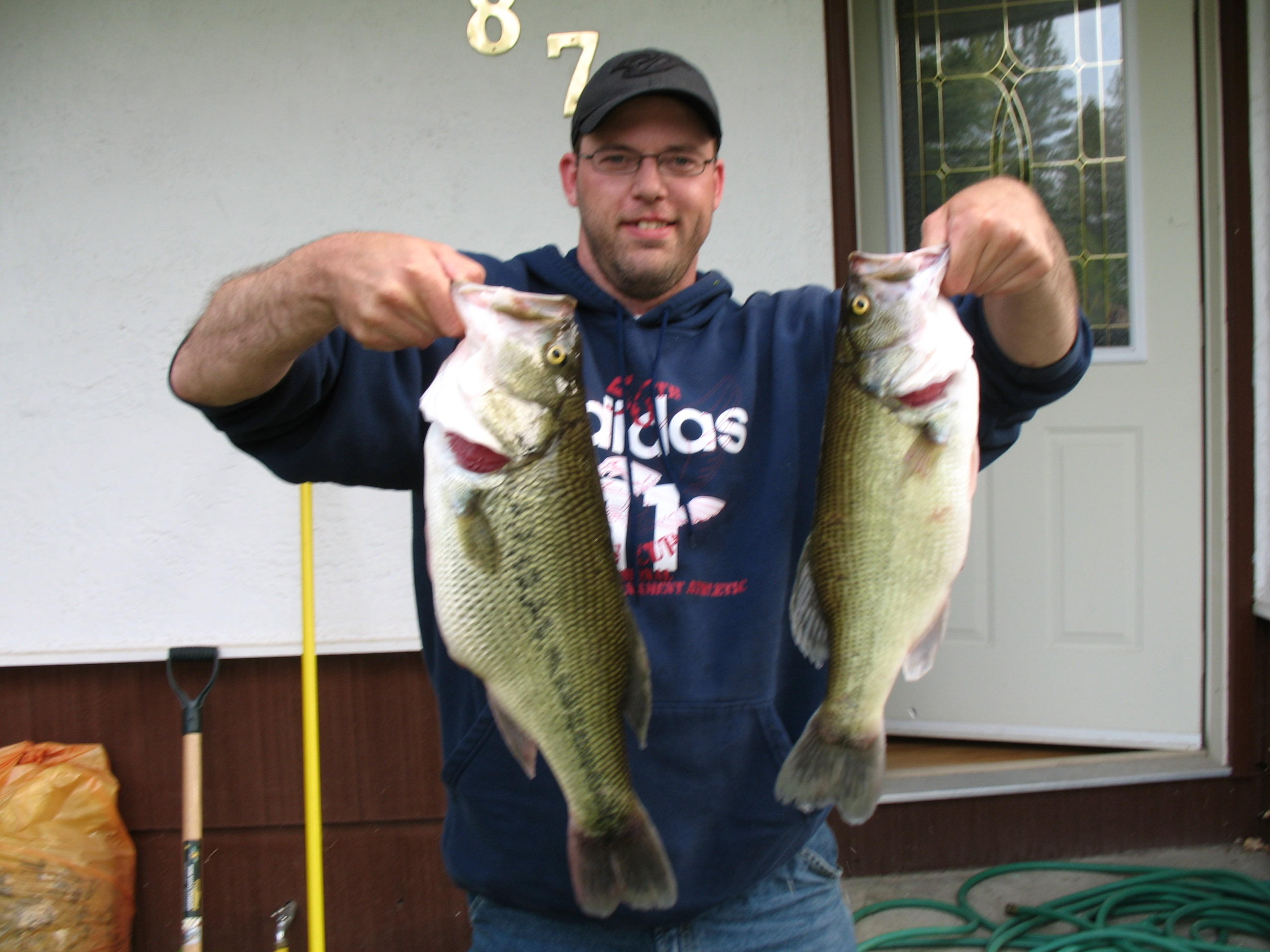 A couple of bass I caught the other day. That one is pretty big for around here, and in two days several people have asked me how I caught such a big bass (not sure how they knew.....I guess my neighbour told them). Anyway, thanks to everyone on here for all the advice over the past several months. Without it, I would not be standing there holding those fish, I would be breaking my rod in half in frustration and taking up tiddlywinks by now! Okay, maybe not tiddlywinks, but maybe poker or something.