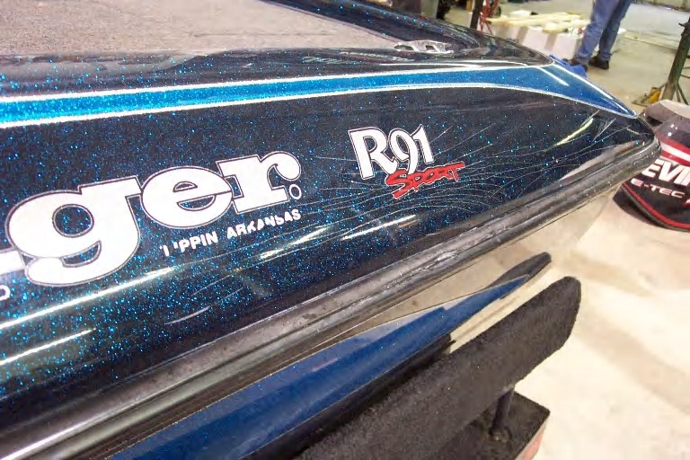 Looks like was T-Boned by a dock. If the cap is not seperated it may be fine BUT you need to look at the transom and inspect engine mount area for any oddness or cracks. Rangers will crack the transom in a heartbeat...Rouge wave or even an auto accident where the trailer takes the blunt of inpact. It will crack the transom and once that starts the motor will break the rest up.