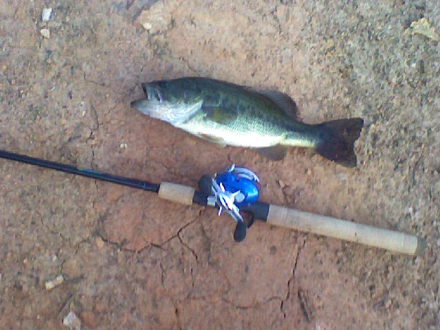 Welp I went out last evening after work to practice with the baitcaster and got a bonus! Needless to say actually catching a fish the first time out with the new reel was icing on the cake. Getting use to the reel hasnt been too difficult, i did backlash one time although it wasnt serious...I forgot to tighten down on the brakes. Anyhow from what I can tell the Daiwa Viento is very smooth and casts relatively easy even for a newbie like me. I caugh the below on a strike king crankbait in sexy shad. Not toooo shabby.