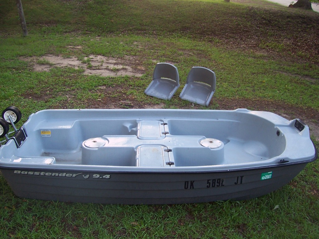 It has been lightly used and until this past year, garage kept. Here are some details: -9.4 feet long -two swivel flip down seats (not padded) -two container areas (battery compartment and bait/live well); note, both lids had the hinges broke but were repaired using super glue -Rated for a 5hp outboard -hardwired for trolling motor with front and rear connections -capacity is two persons, 400 lbs, or 485 lbs including gear -weighs about 100 lbs (I moved it around with a two wheel clamp that fits where outboard motor mounts and could transport it in my flareside F150) -retail at Cabelas is $899; cheapest I found it on the net was $399 plus $300 shipping; ebay has one listed for starting bid of $99 but also local pickup. Asking $400 for local pickup in the Columbus/Fort Benning, GA area. Can send pics upon request. THX set |