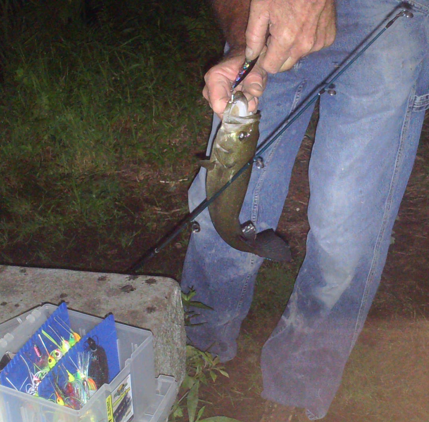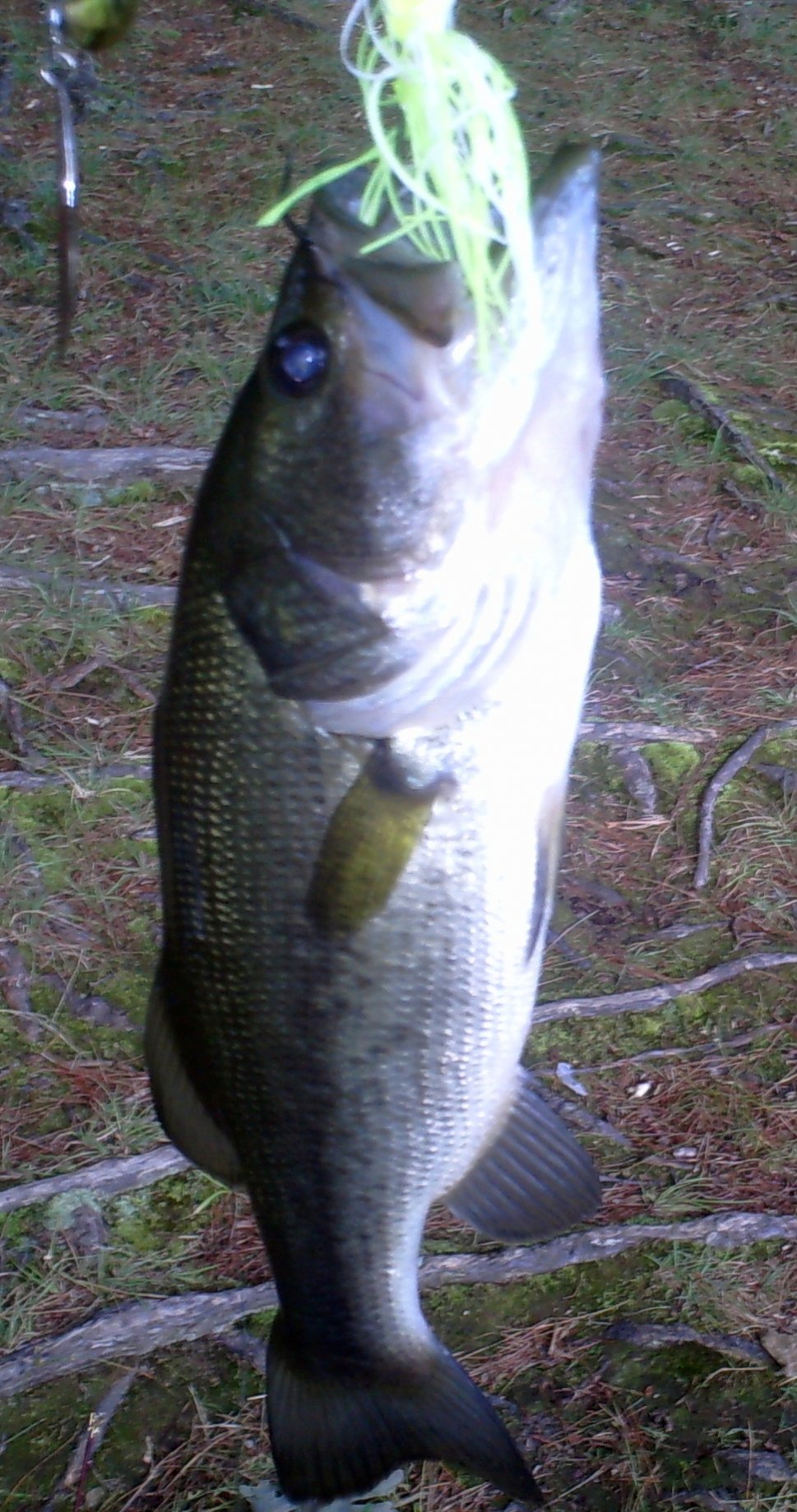 Well dad and i hit my local pond from about 6:30 to 10 tonight and had a blast the only thing that was annoying other than the bugs was the fact that the weeds are just about over running the water and we ended up picking up some trash left around by other people but thats another rant . There was no bite on soft plastics tonight and all of my fish came on a spinner bait white and chartreuse . Dad caught his on a silver and black suspending crank . Nothing over two pounds but a fun night all the way around .