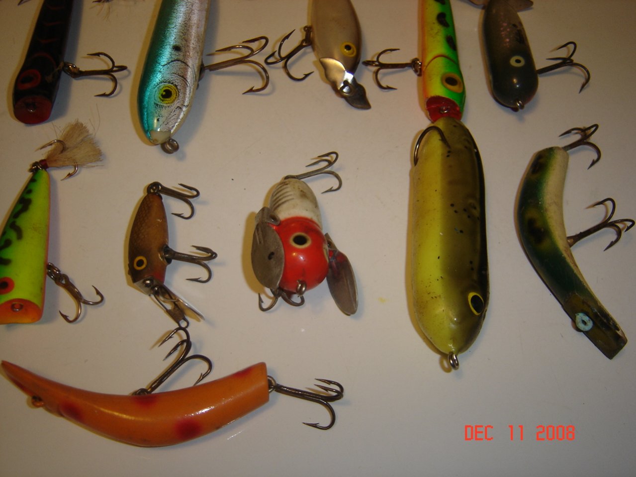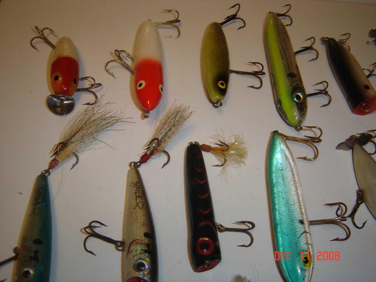 top picture has 2 chugbugs 3 rapala pop-r's and a rebel popper..