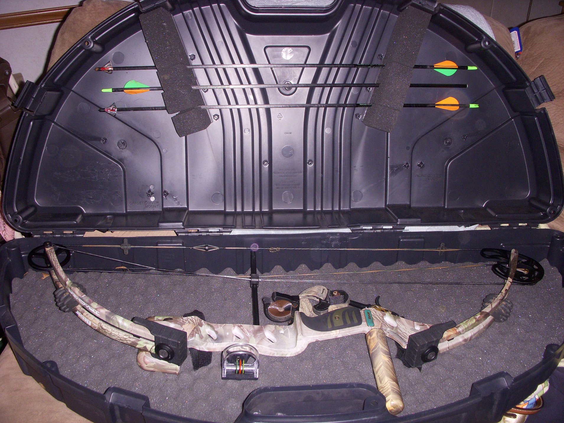 i have an almost brand new Bear, Tracker compound bow. I bought it when archery season started to hunt before my baby girl got here... its been hunting twice and had about 80 practice shots through it have plenty of pics..ready to shoot right out of the case. fully adjustable to fit your specifics, come with hard case,whisker biscuit, 6" stabilizer, quiver, 2 limbsaver dampeners, 3 pin tru glo sight, release, 6 arrows with field points and two Crimson Talon broadheads. of course it has a peep, two string leeches and a nock loop