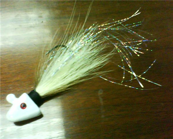 Thanks guy's i have some deer hair jigs tied up. This pattern i call the the Sho-Me-Shad. They have white heads natural white deer hair & alittle rainbow Flashabou. Check sales section for more info.