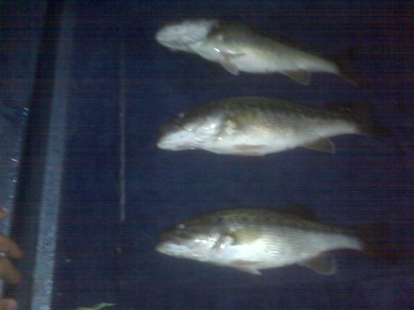 Well we finally got the boat runnin so we decided to take it out fishin last wednesday, runnin great hooked up to the earmuffs in the front yard. Just as luck would have it we couldnt get it to crank after we put in so we just trolled around. We fished about two and a half hours and ended up with 3 chunk spots(1st and 2nd pic). went back out tuesday to check her out and finally got her fired up and startin to get er runnin and it was 52 and wind was 15-20 mile gusts, choppy choppy water, but after we finished testin it out we fished about 15 minutes and i caught a spot 1.5 lbs on a rattle trap (no pic) then we left freezing! went back out today after fillin the boat up and caught 7, missed a pile of em but ended up with our 2 best fish being a 3.5 LM (3rd pic) and a 2 lb spot that my brother caught(4th pic), only kept 6 (5th pic) cuz number 7 was a 10 inch dink. great fun day of fishin tho