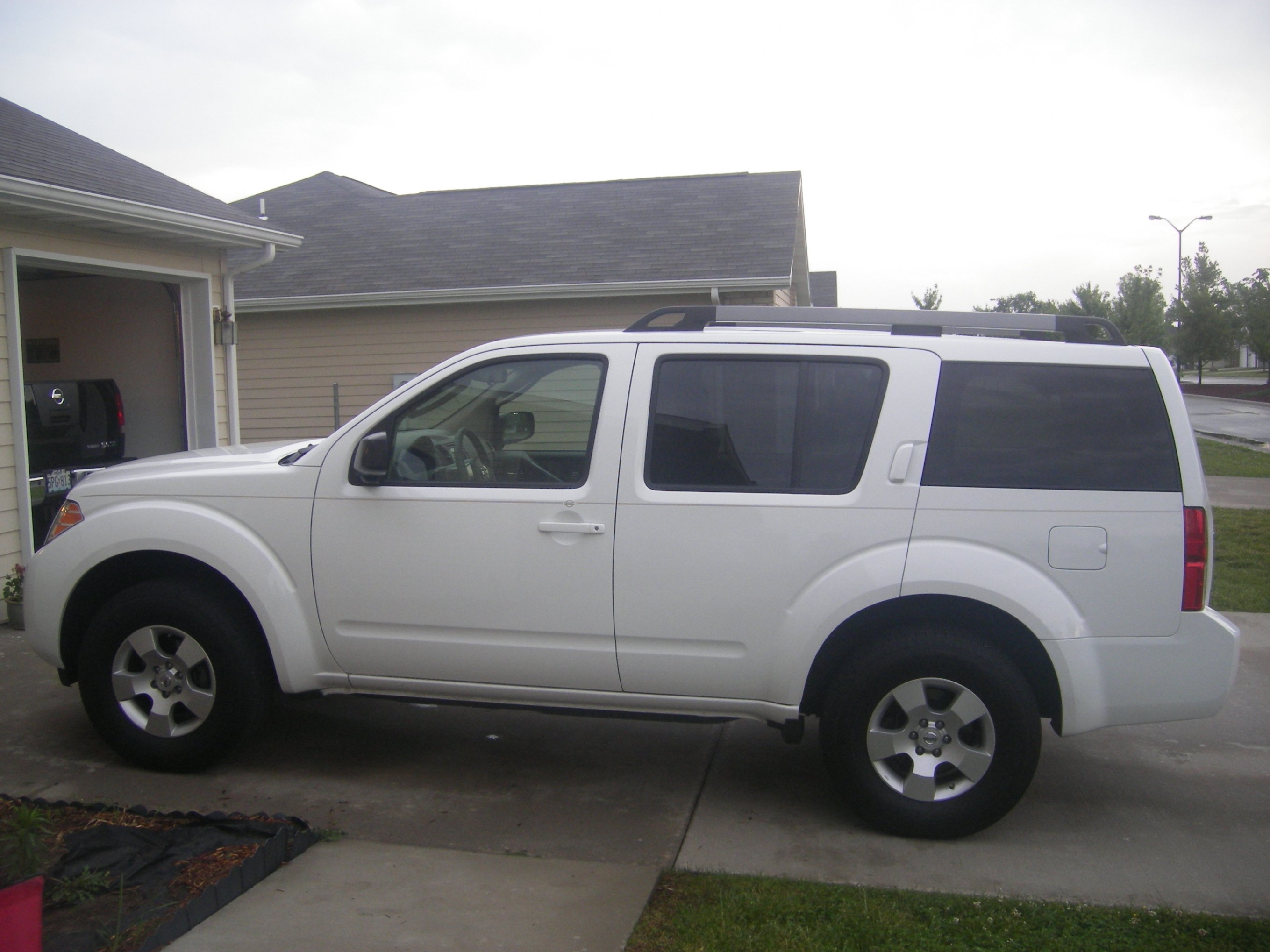 just wanted to post pics of our new vehicles. we bought britney a new pathfinder a few weeks ago. then after a lot of thinking and weighing the options we decided it would be smarter to go ahead and trade in my truck while it was still worth something because she was getting a lot of miles on her. after a big down payment and my trade in we owe $1,500 more on this truck than i did my old one. britneys pathfinder is an o8 with 15,000 miles on it. it is pretty well loaded with everything but leather (which is being added this week) and gps (which may be coming soon).