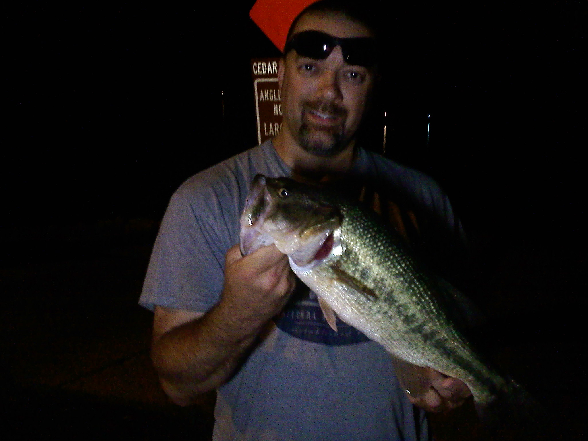 Went night fishing last night. This was caught on a lake in my area. About 10:30 p.m. caught her on a white tube/blue flake, off a down tree. She weighed 3 lbs. Bad thing that is the only thing I caught.