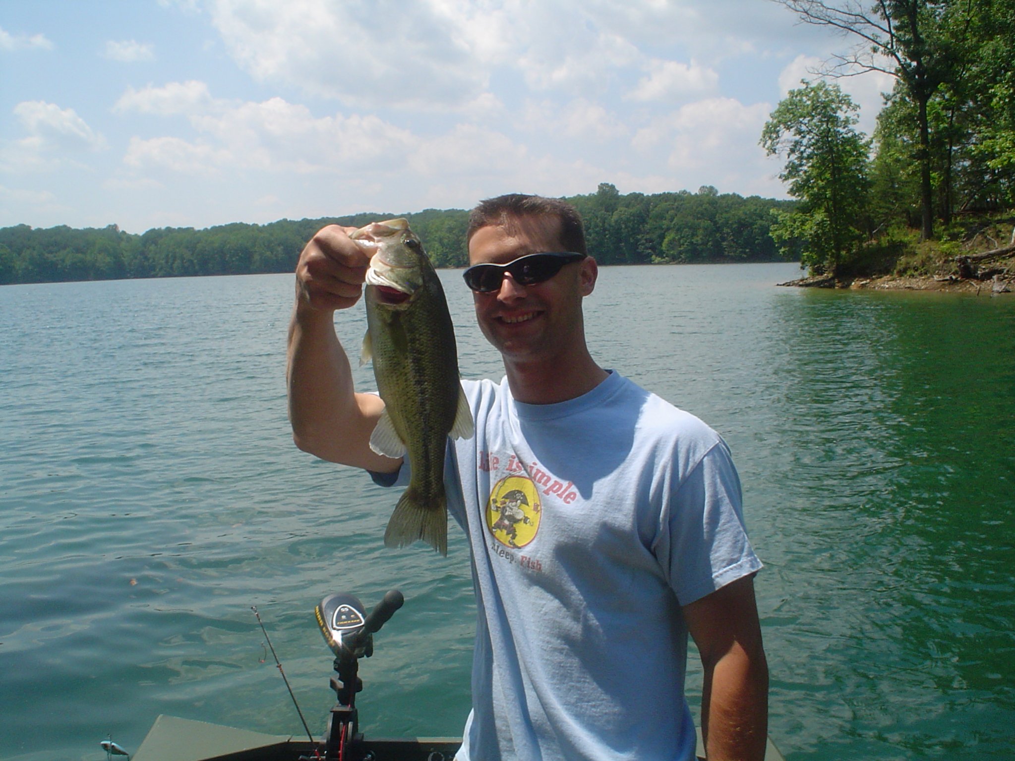 Thanks. To be honest I am not sure because i did not have a scale :-( I had owned one previously but it was very old and kinda rusty (a hand me down from a friend). I do not want to estimate on the weight because it drives me crazy when someone posts a pic of a 4lbs bass and says its 8lbs (i know no one on this sight does that but on others... ahem ESPN...it seems to be the norm). I know that was hers because it is the biggest largie she has ever caught and she has only gone bass fishing with me. I know the PB was going to be a PB just by the way it hit. I put a cast inbetween a split trunk in an old lay down using a strike king zero worm in watermelon red flake and let it sink. I tried to hop it once and my rod bent and I immediately thought i was hung up....then...zzziinnnnngggg my line zips out from under the lay down and the fight was on :-) I have had other species of fish do that to me while saltwater fishing but not fresh so before i even had a look at the fish i knew it was going to be my PB largie :-)