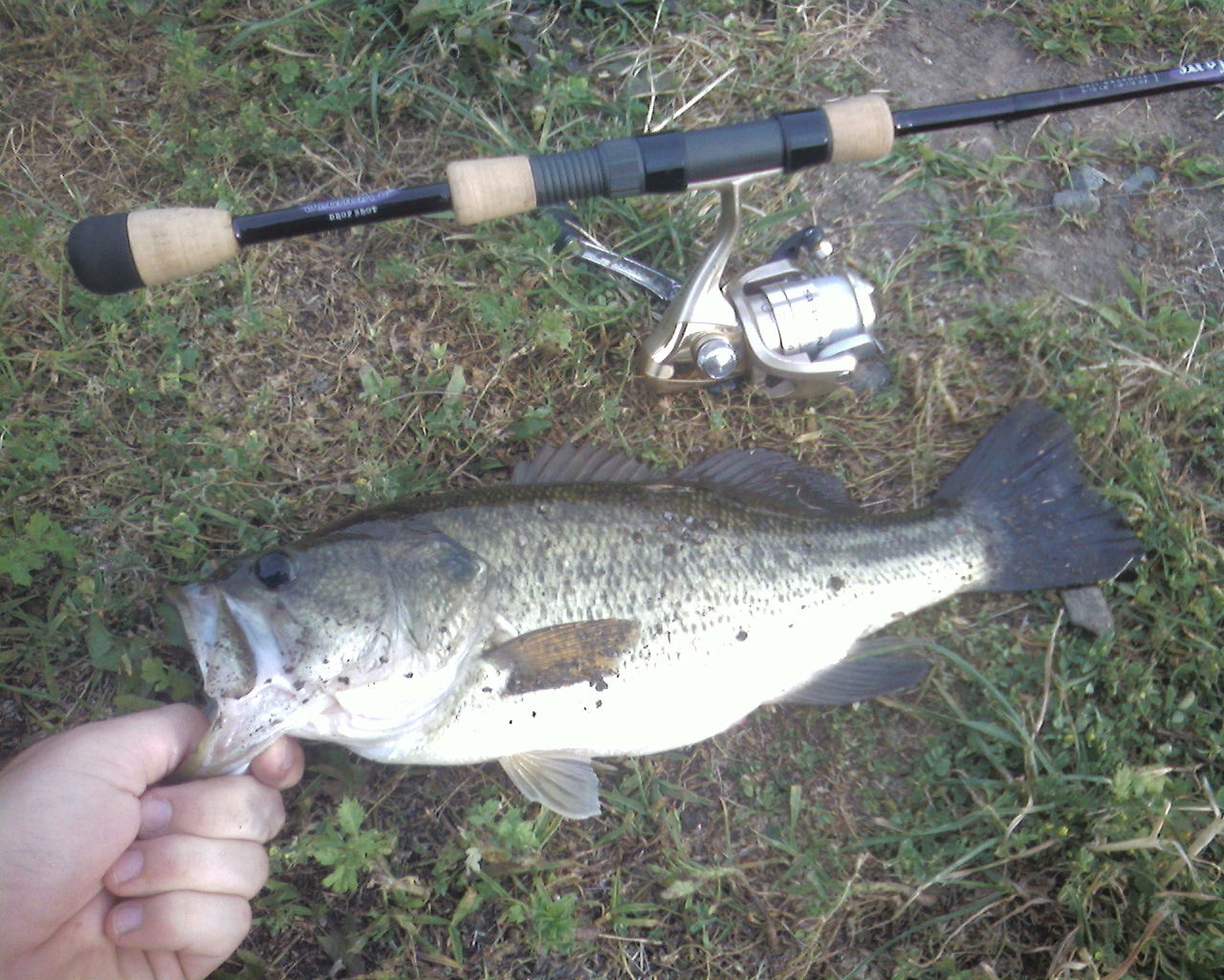 Went back to the same spot tonight again for a quick 45 min session. USed the same DS rig with the same aaron's magic robo worm. Caught myself two more bass on back to back cast about 20 min in. Sizes were similar to the last outing one around 15" the other around 10".