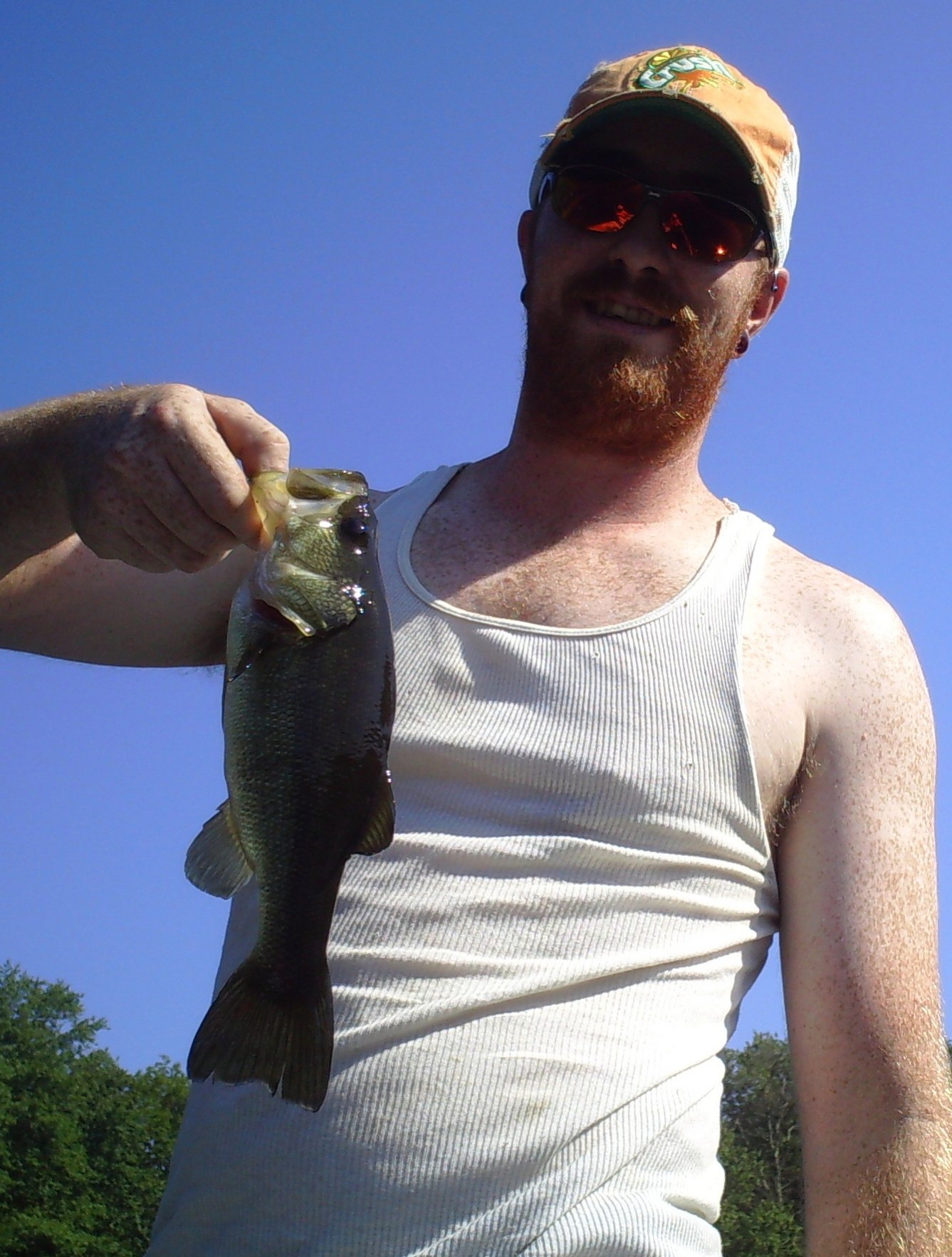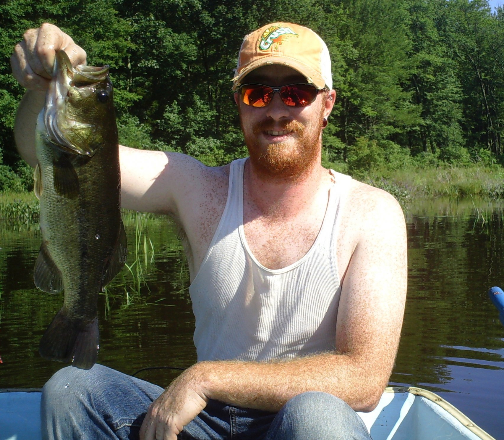Well i headed out with the boys my brother and my dad this morning and had a decent trip , unfortunately the kids both got skunked using live minnows but here are a few of the fish i got . We fish out of the row boat which was fun even though I am sore as all get out from rowing . The water was almost like chocolate milk from all the rain we have had and the water level was up about 5 inches . All fish came off a white spinner with a trailer hook either cast along the pad lines or pitched into the growth along the shore .