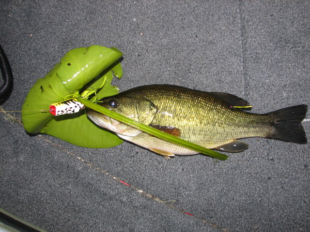 In 12 years of fishing on the lake where I do 95% of my bass fishing, I had never hit the 4lb mark before last year. That all changed last year when I landed three LM between 4lb even and 4lb 2oz. I surpassed that over the weekend when I was out fishing with my brother-in-law and 2-year old nephew. This one succumbed to a Spro Bronzeye Poppin' Frog and weighed 4lb 5oz. Length was 19.5" and girth was 13.25."
