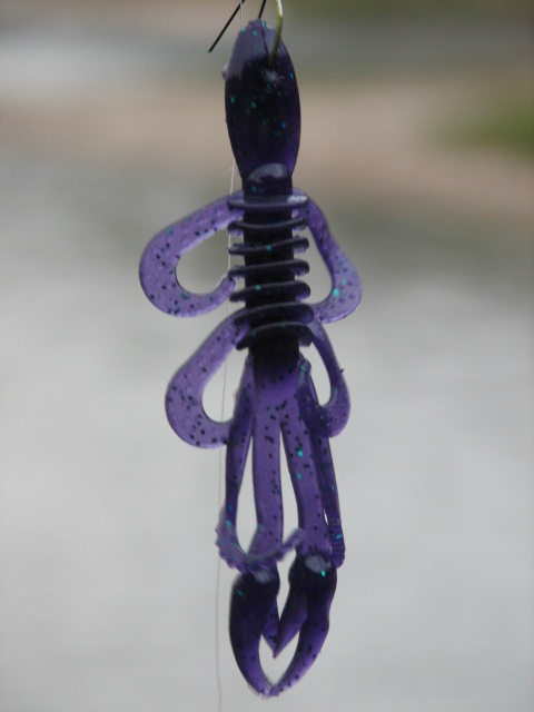 I was using a Cabela's AquaGlow 4 3/4" Junebug Creature bait and went through an entire 8-pack of them due to the aforementioned pike ripping them apart.