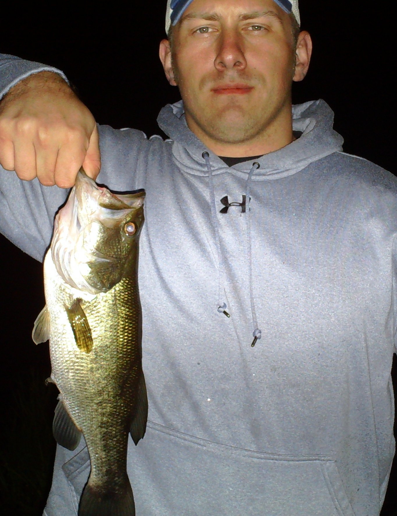 We started out around 5:30pm and fish until a bit after midnight . After having temps in the upper 70's for most of the week the temp tanked yesterday to the low 60's and into the 50's after the sun went down . The fishing was slow , almost as if the fish just turned off . The only ones we did get came off of a rage tail toad and a black buzz bait well into the night .