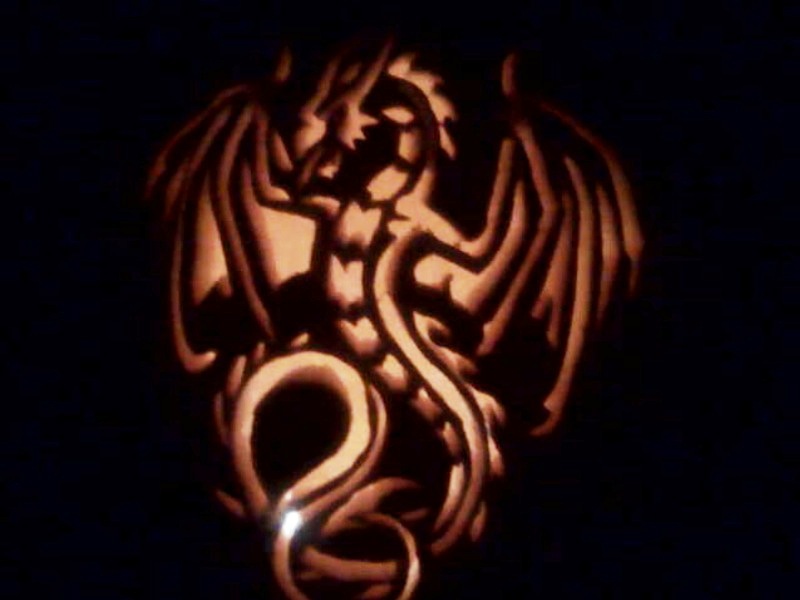 Yes every year we get a more complex design, that one took 6 hours and a dremmel to complete. last year was a graveyard, and a suicide pumpkin (suicide pumpkin was very easy but one of my favorites, make a dead eyes pumpkin, stick a toy gun in one side of the pumpkin, knock the opposite side of the pumpkin out and spread the pumpkin guts around the exit wound). The year before was a skull and a devil it has become somewhat of a tradition with me and my kids. |