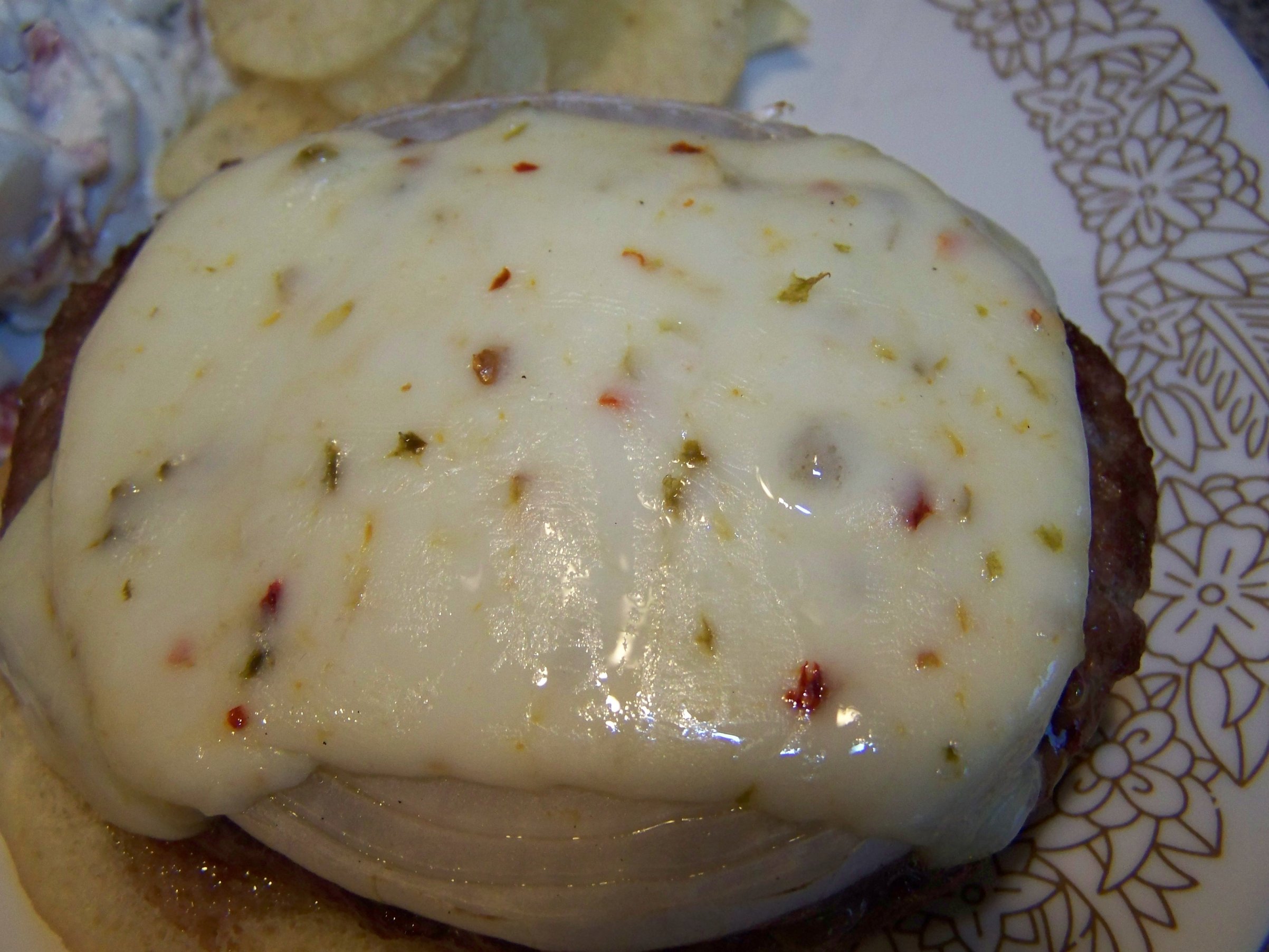 That's a hell of a burger Mallen. Red onions, pepper jack cheese and secret sauce....Mmmm!