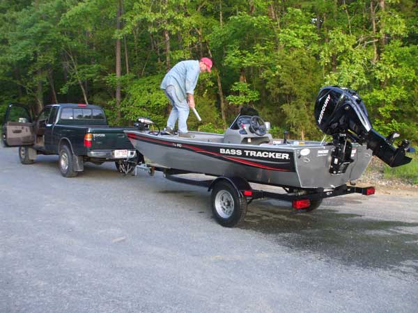 We were both very pleased with the performance of the little 4stroke 30hp Merc.....it pushed us up on plane without much trouble, and with a bit of fiddling with the trim buttons we could get it to scoot across the water fairly quick and smooth. Not quite fast enough to make your eyes water, but fast enough to rip your hat right off....Don't ask how I know.![]() Since our classic old boat only had a hand operated trolling motor, we were new to the foot controlled unit, and quickly found out its gonna take us both a bit of a learning curve to get the hang of it....lol. But the 45# thrust pushed us around nicely, even when the wind came up.....I do think i'd like one of those recessed trays to set the foot pedal into....and I gotta get a stand up casting seat for sure. As for the boat itself, I never felt unsafe or uncomfortable in it....even when both of us was moving around. Although I will say that two full sized guys moving about can really rock a 16ft aluminum boat around.....lol.....It never felt like we could swamp it even if we both stood on the same corner....I'm 6ft 200lbs and Ron is 5.8 and 170, but I could see where it might be easy to rock the boat at the wrong time and cause the other guy to fall off the deck should he be standing and not ready for a sudden movement. I'm gonna have to watch those monster hooksets...lol. All in all, Ron and I came off the water very happy with our little bass rig.....Ron had concerns after our testdrive the other day that it might be underpowered, but without having the extra guy(salesman)in the boat it performed fine......even with 95% of our gear onboard, and a livewell full of water....lol. We don't fish tournaments, so getting to a fishing spot really fast is not an issue.....we both just fish for fun, and we're both pretty sure we can have plenty of that fishing from this little Tracker boat.