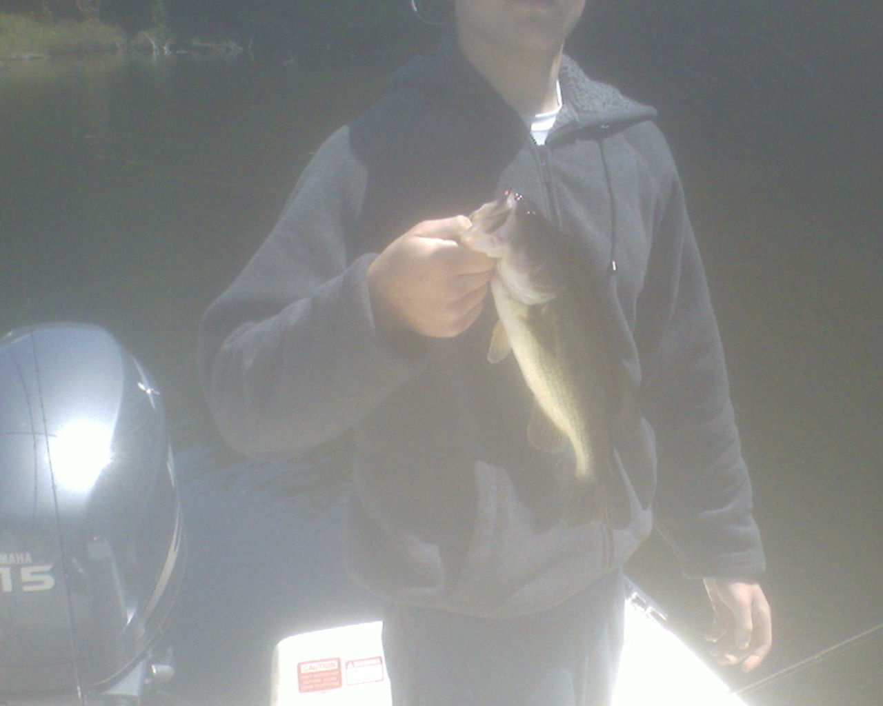 We ended up fishing in the northwest bay that is fed by a creek with a lot of great structure. Usually when we fish here we drive over and bring the kayaks, but this time we drove the boat up the creek. I started off fishing a challenger minnow, my neighbor had been told that it was really productive this time of year so he bought one for me. First cast with it I get hit but I miss hooking it, so I throw it right back and sure enough I hook up with a decent LMB. We fished there for another hour or so and I caught another largemouth on the drop shot, and a smallie on the challenger. Sunday morning we got out on the water around 8 and start to fish the same ridge as we did Saturday, it is about 100 yds. off our boathouse. At this time the lake was flat and clear and no wind. Pretty soon I notice a bunch of fish jumping pretty close by. So we motor over and almost every cast we were catching smallies just below the surface, I was throwing a crankbait and my dad was swimmin' a baby brush hawg. We were also catching them on the drop shot too, they were all over the water column, something we have never witnessed here before. Within two hours we both probably caught 10-15 smallies. All in all it was a great weekend. |