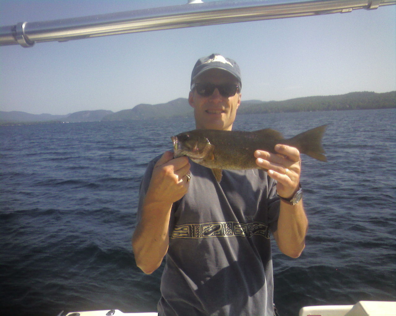 So I went up to our lake house with my dad for his birthday. He had a tough week at work and just wanted to get out, relax, and fish. We got out saturday morning, pretty nice weather around 65-70 degrees with a light wind. Started off fishing some mid lake ridges around 20'-40' deep with drop shots, he used live crawlers and I stuck with my favorite roboworms. Caught some decent smallmouths, and then we decided to travel down the lake to another spot.