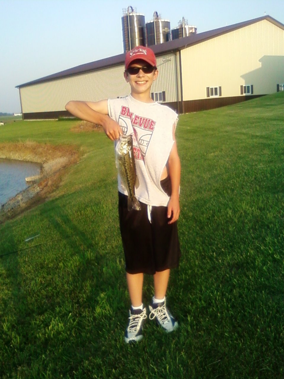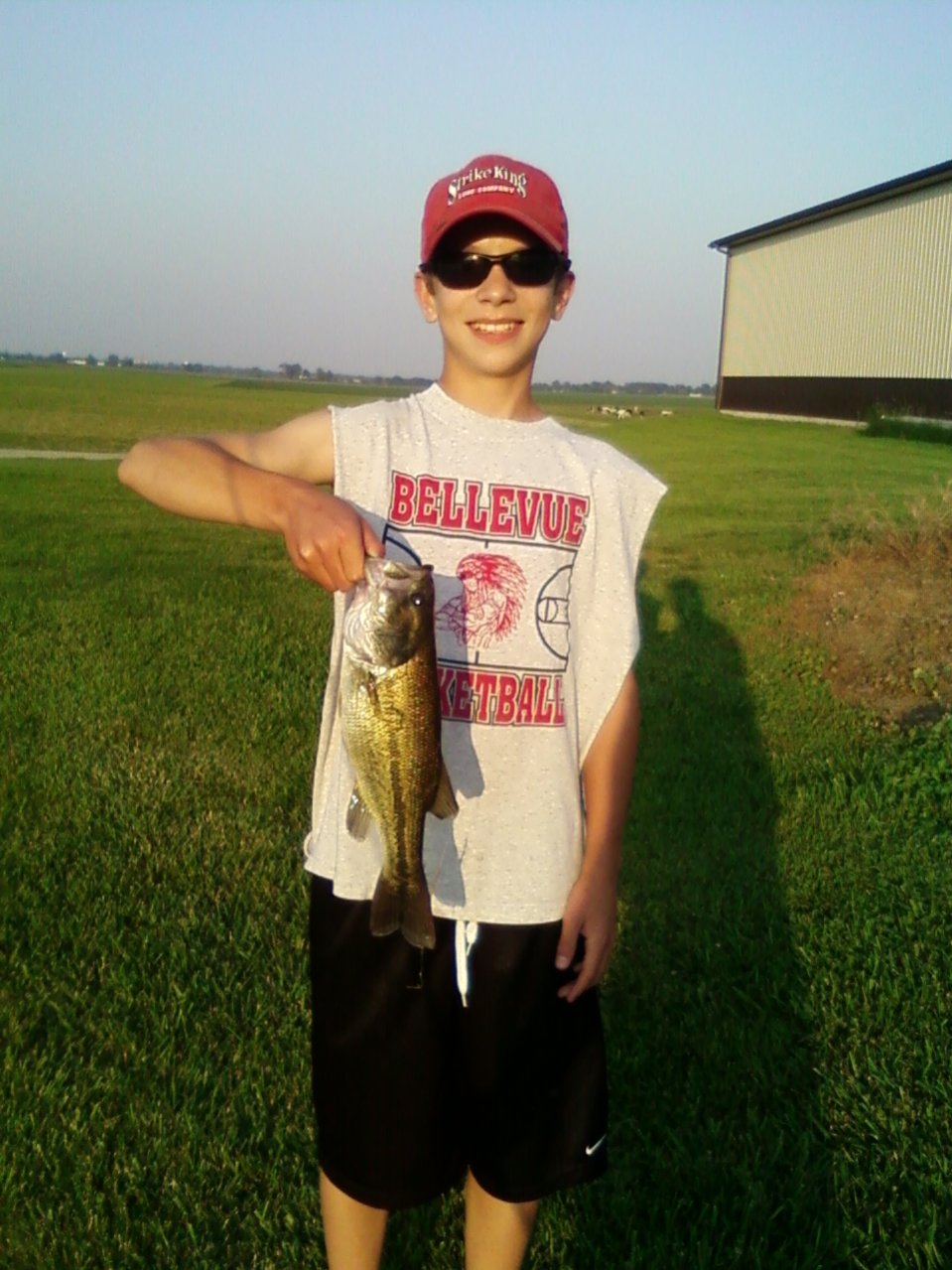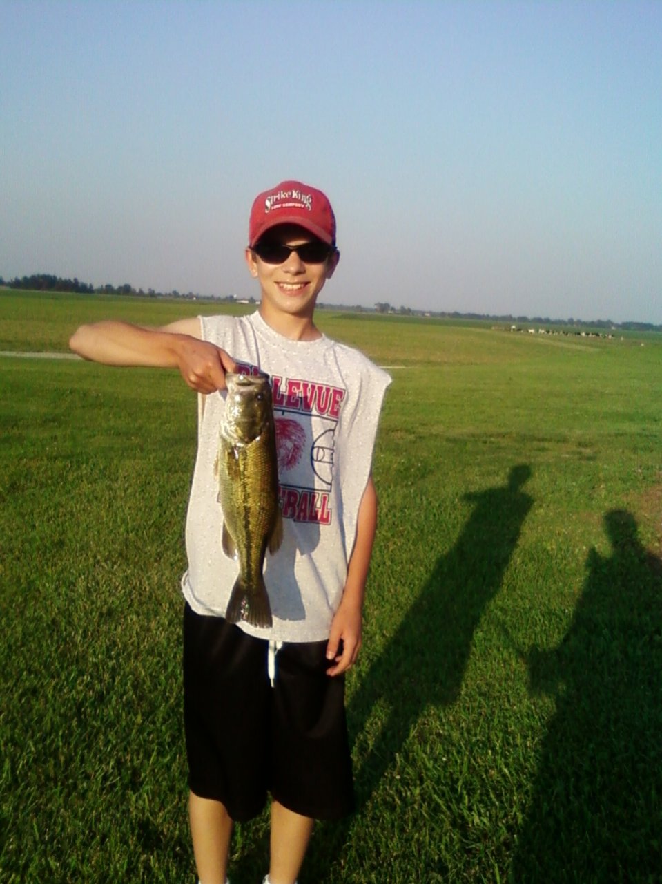 Then Ryan and I went this morning to a little marina on Lake Erie. Half an hour into the day I had a 1 somehing largemouth. I dont remember the weight. That was caght with 1/4 oz spot remover with a GP Mizmo Scorpion worm. After no more bites on that I decided to try for some rock bass. I threw on a little inline spinner. I was skipping it up next to a wall when I felt a thump. I missed it. I threw back in there and I got him. I was like thats a nice rock bass! Turns out a largemouth came jumping out of the water ! Way better than a rock bass!He went one something also. We moved to a different marina farther down the road and the inline spinner produced again. I caught about a 5 inch bass! I hope the rest of Memorial Day weekend stays this hot!
