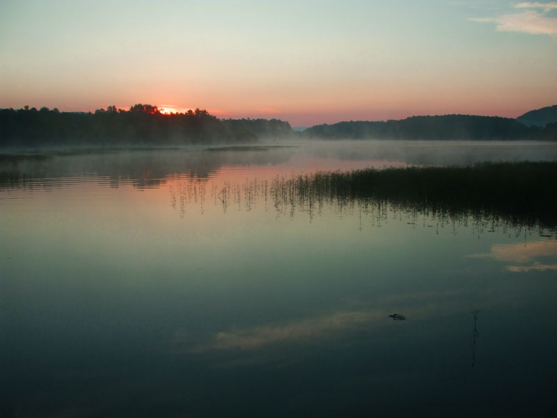 ![]() As you can see from the pics I started the morning in a cove covered in grass and pads.....I just knew a topwater frog was gonna be the ticket.....Boy was I wrong...hehehe Not a single bass bite all morning.....I switched lures several times trying buzzbaits, spinnerbaits, plastic worms and creature baits.....NOTHING!!!! Finally as the sun was getting higher I had a blow up on a Ragetail toad as I worked it thru a grass patch......but he missed it.....recast....another miss....I did that 6 times in a row and he missed it every time.....I'd follow up with a worm or tube bait and nothing....I came back 30 minutes later and ripped the toad thru that spot again,and he blows up on it and misses..and again, and again.....another 6-8 times.....I finally tossed in a spinnerbait a few minutes later and he hooked up and the fight was on....only to find out it wasn't a bass at all...it was a Chain Pickerel. We didn't even know they were in this lake....lol.As the sun got higher my buddy Ron ran across some crappie as he was working a Road runner thru the grass....Since I wasn't gettin any Largemouth hits, I switched over to Road runners, and joined in the fun....lol We ended up fishing those baits for the remainder of the time we were there, and caught Bluegills, Warmouths, Rockbass, Punkinseed, Crappie, Pickerel, and Saugeye, in everything from 1ft to 24ft deep water.....lol....What a crazy fun day. I cleaned fish for an hour once I got home. ![]() ![]() ....That actually felt good and I didn't mind at all, although I can tell I need some serious practice with my fillet technique.....Its been awhile.....In fact that might be another subject i'd like to talk about more in another thread.![]() Here's a few pics I took this morning....I love sunrises and sunsets over water. The only picture I took of fish was the Pickerel since we didn't know for sure what it was....lol....Maybe next trip ol' Bucketmouth will show up and cooperate....lol.